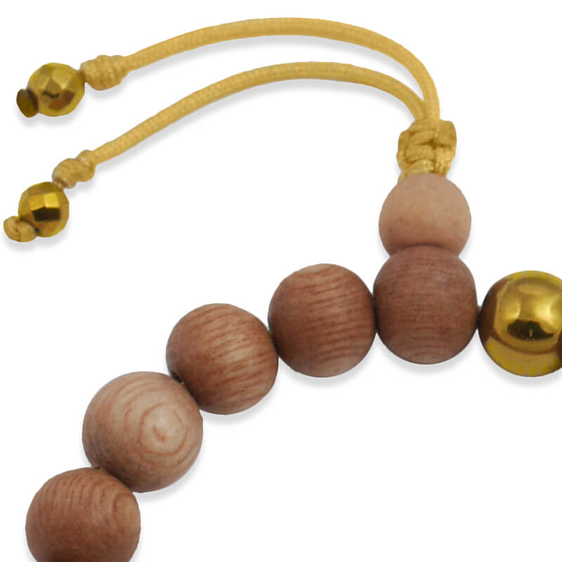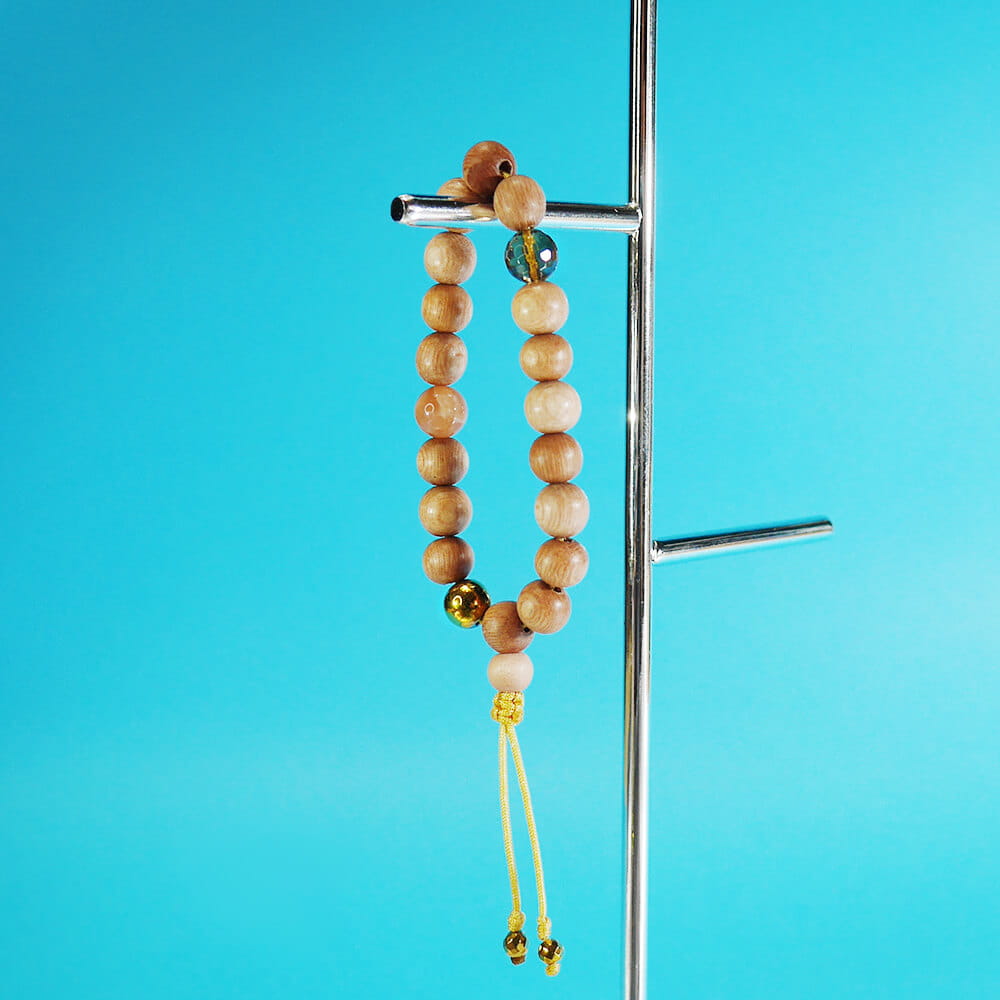 Bransoletka buddyjska drewno różane kwarc kamień słoneczny hematyt złoty