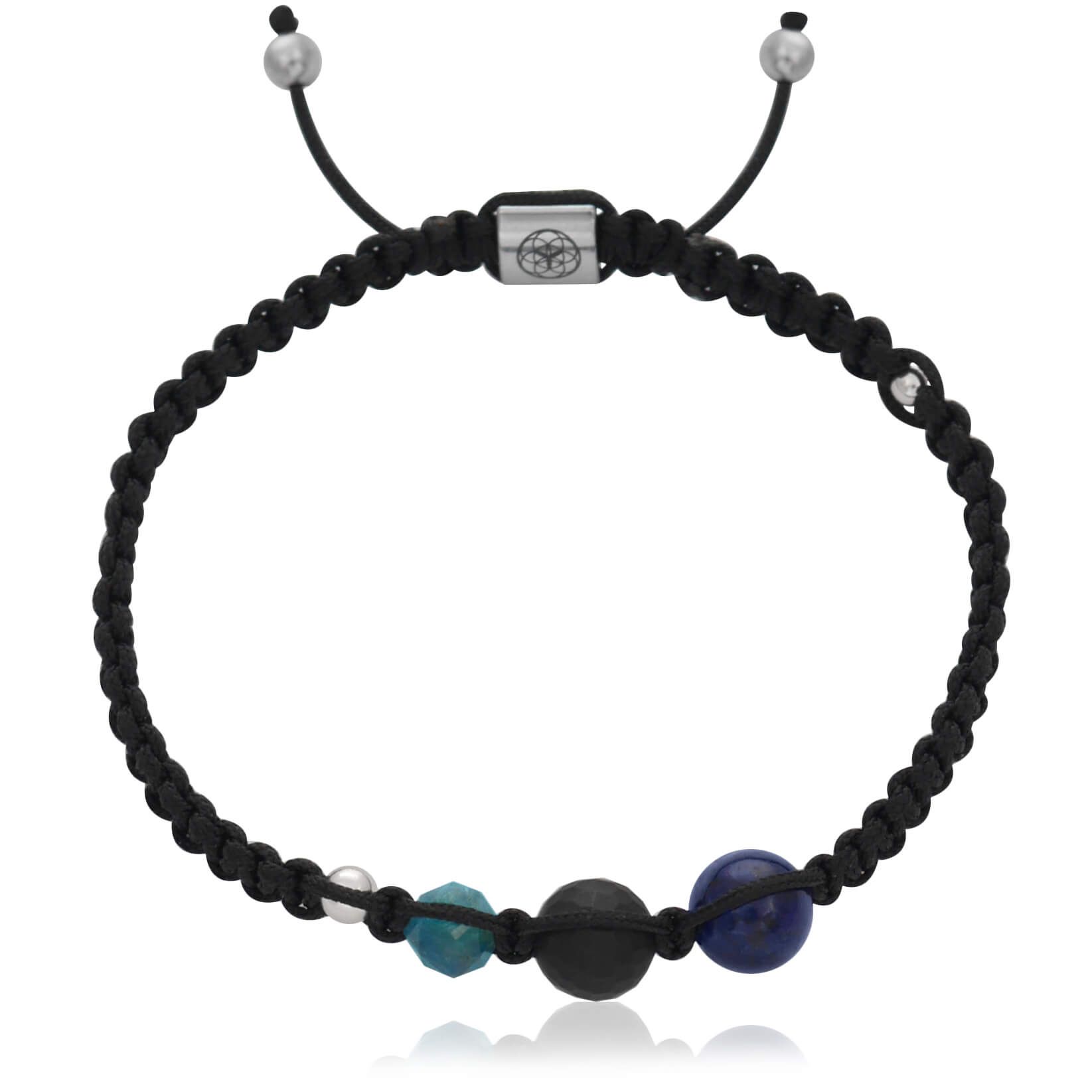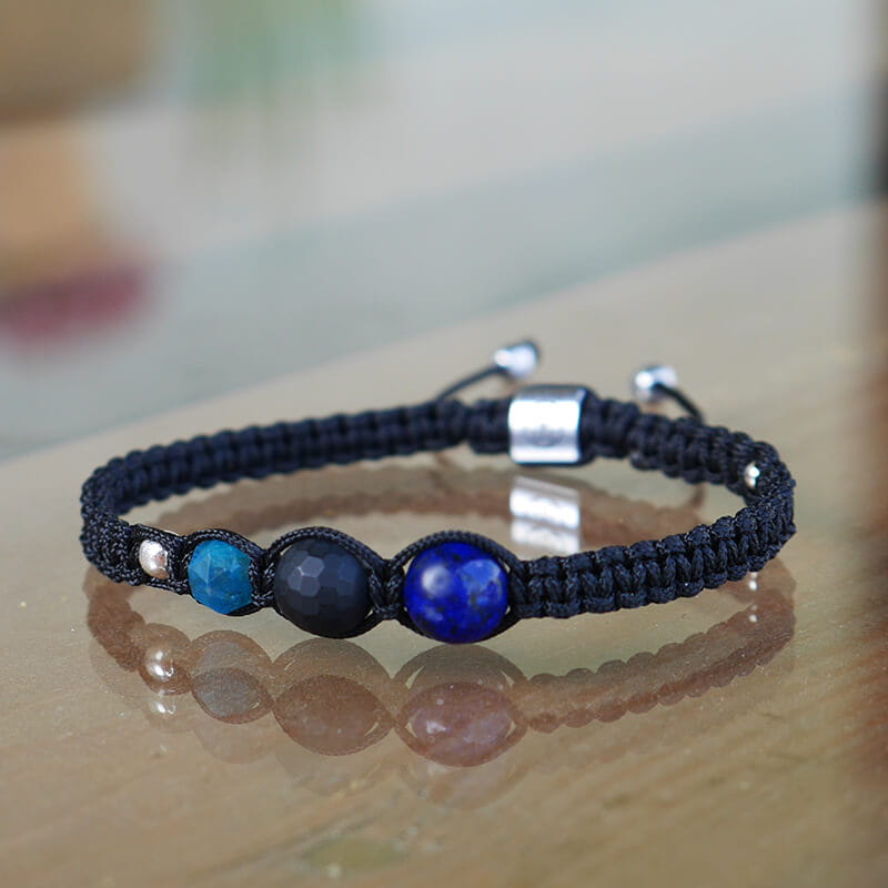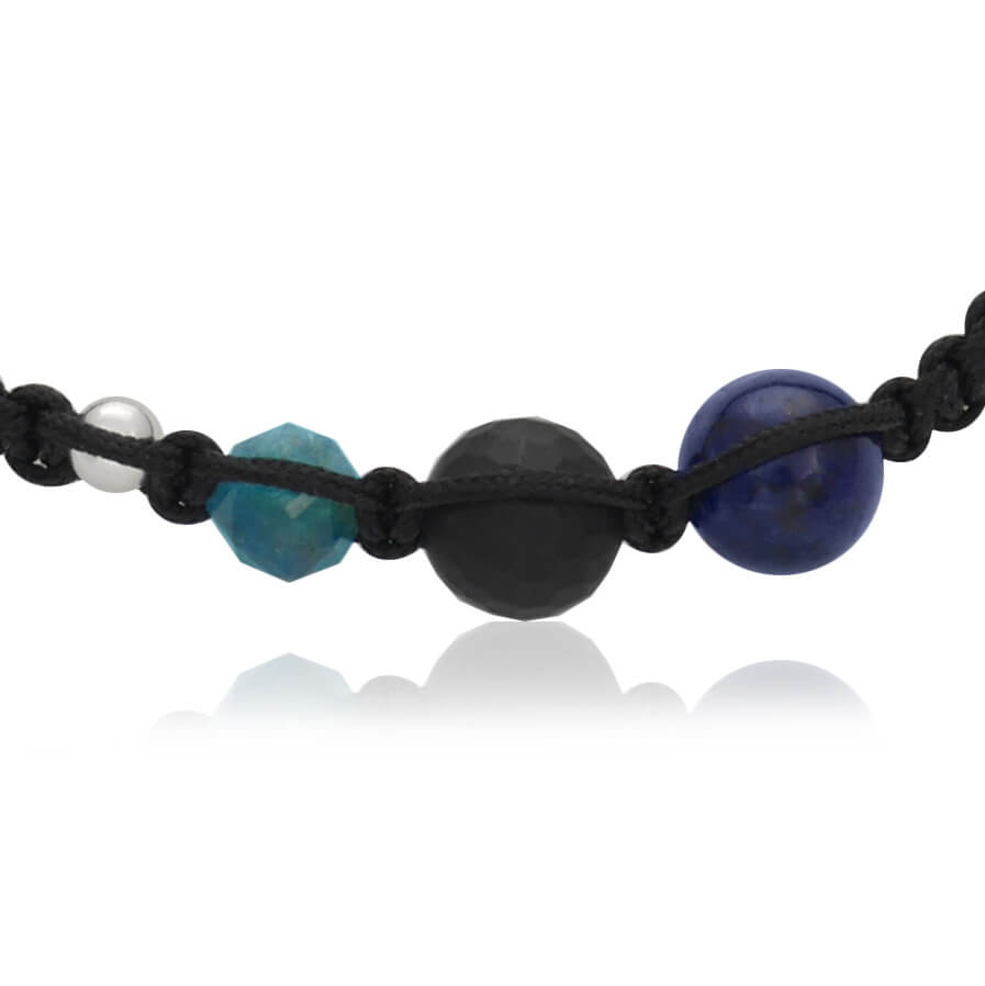 Bransoletka makrama lapis lazuli onyks apatyt srebro hematyt czarna