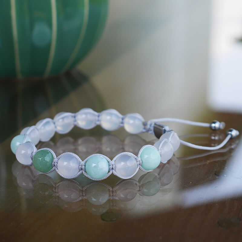 Bransoletka shamballa agat mleczny amazonit hematyt