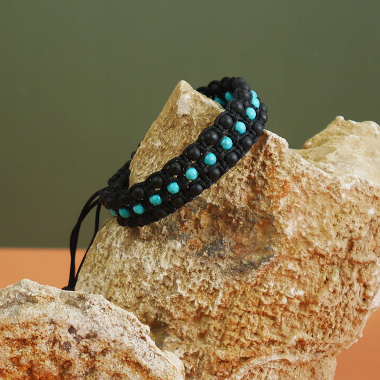 Bransoletka shamballa potrójna onyks czarny turkus kamienie naturalne