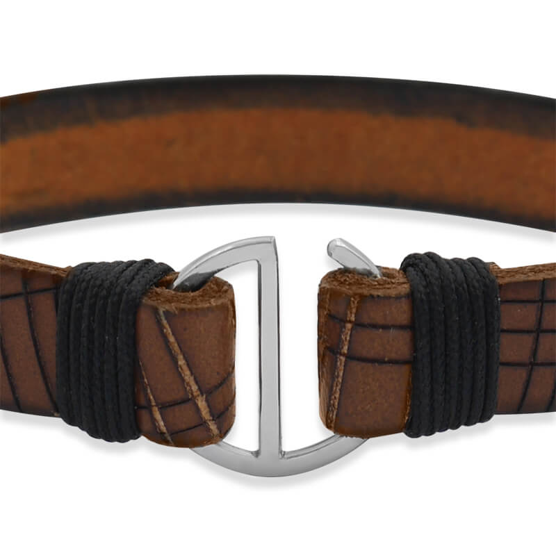 Bransoletka skórzana brązowa gruba srebro zapięcie koło