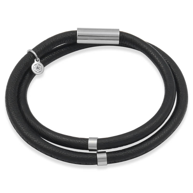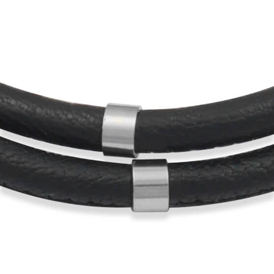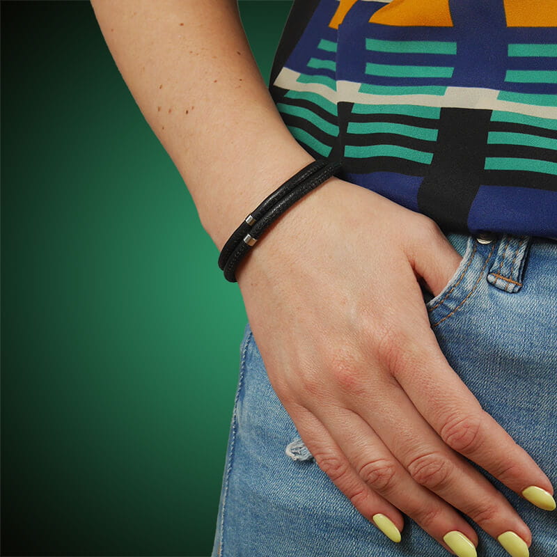 Bransoletka skórzana czarny rzemień ekskluzywny stal szlachetna logo francow jewelry damska