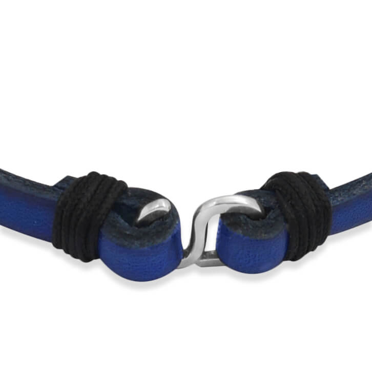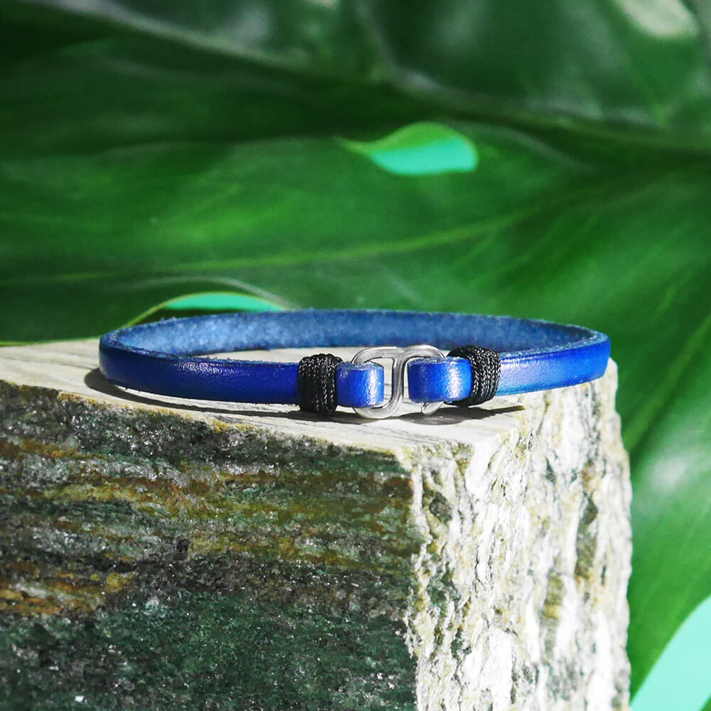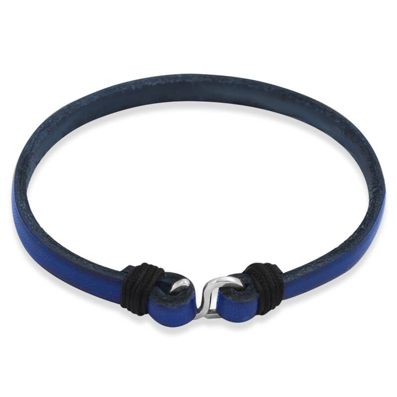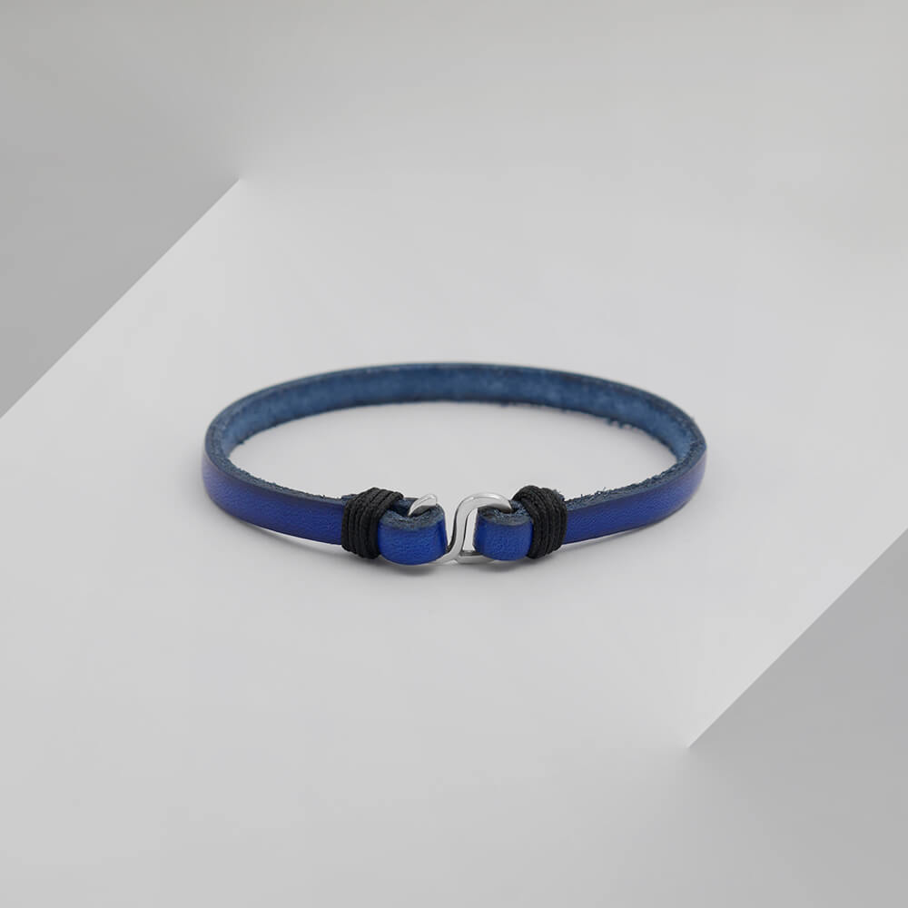 Bransoletka skórzana płaska zapięcie srebro granatowa pojedyncza