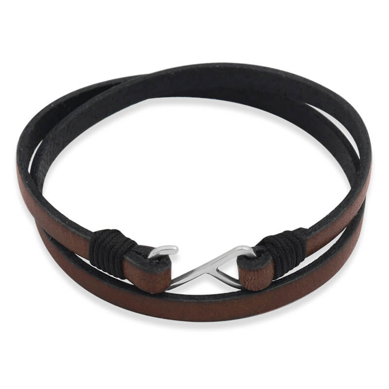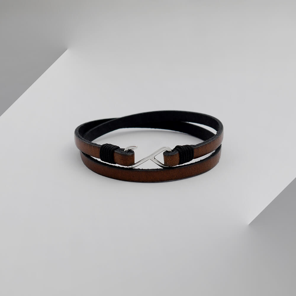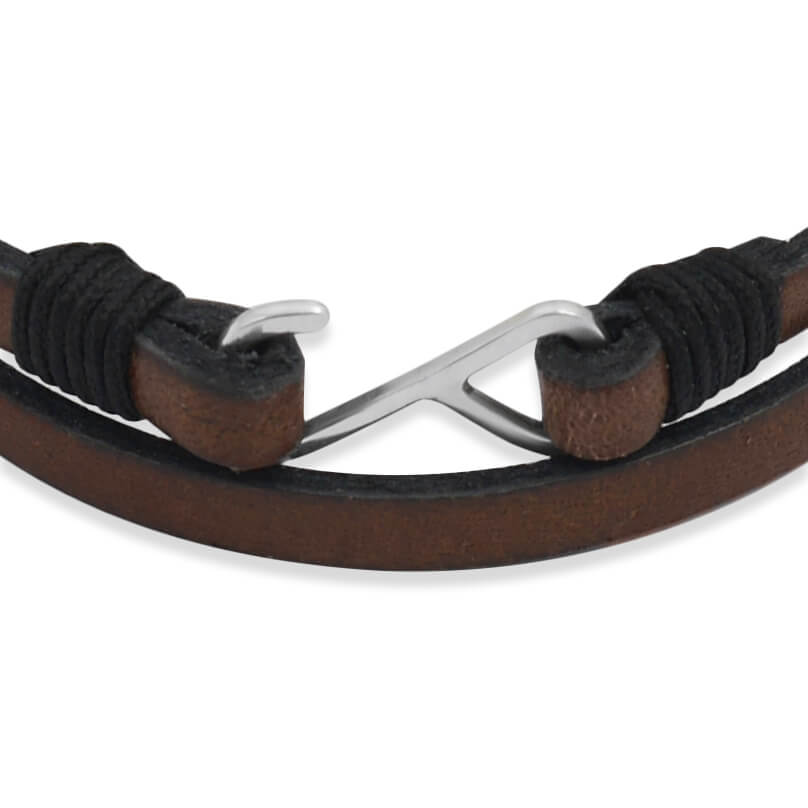 Bransoletka skórzana podwójna brązowa zapięcie srebro