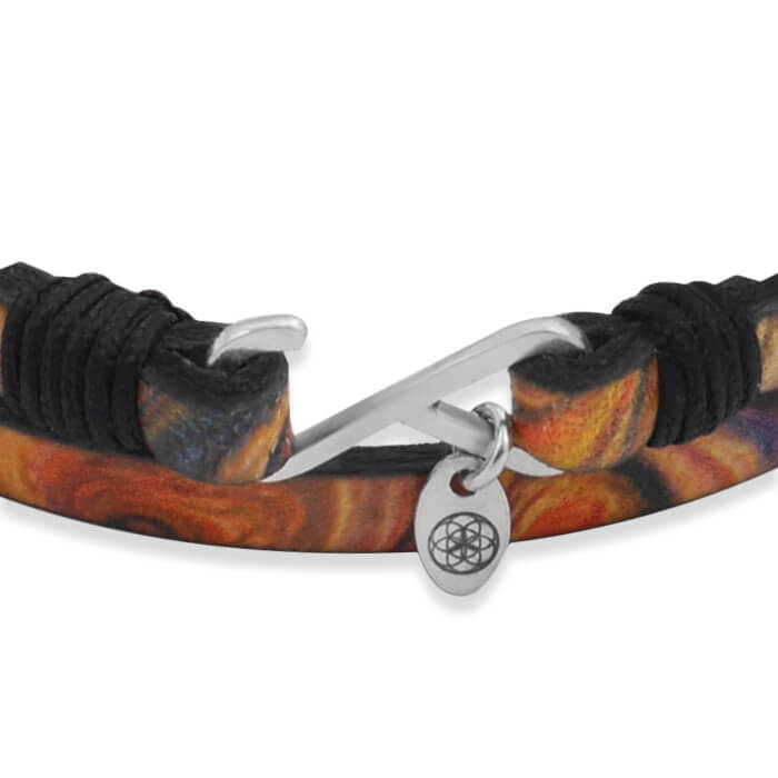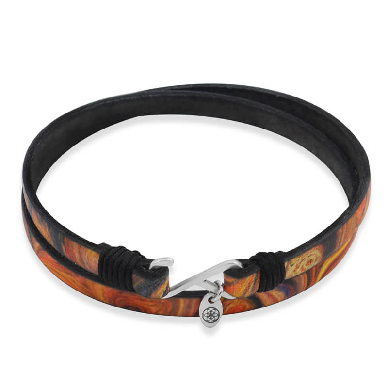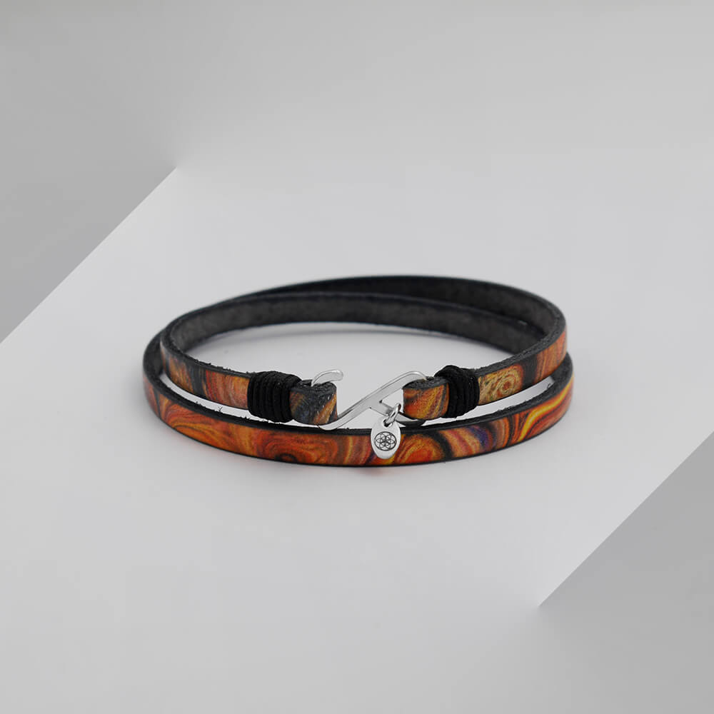 Bransoletka skórzana podwójna pomarańczowa hippie zapięcie srebro
