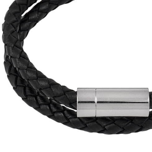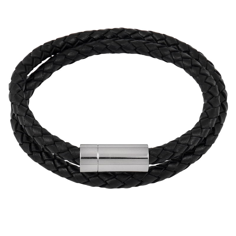 Bransoletka skórzana podwójna rzemień czarny naturalny