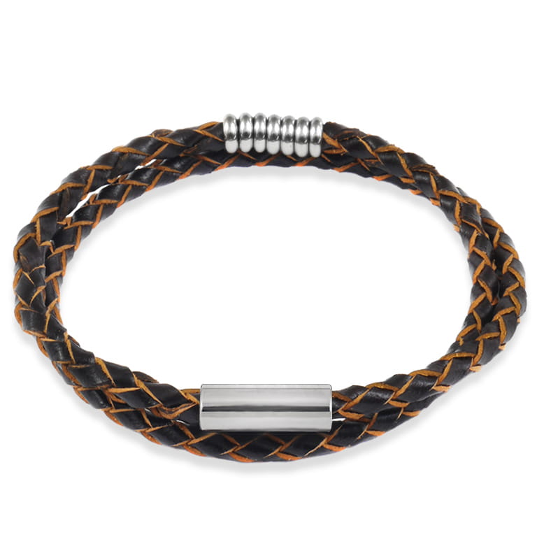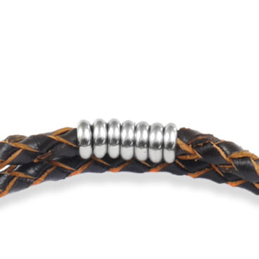 Bransoletka skórzana rzemień brązowy pleciony podwójny stal szlachetna
