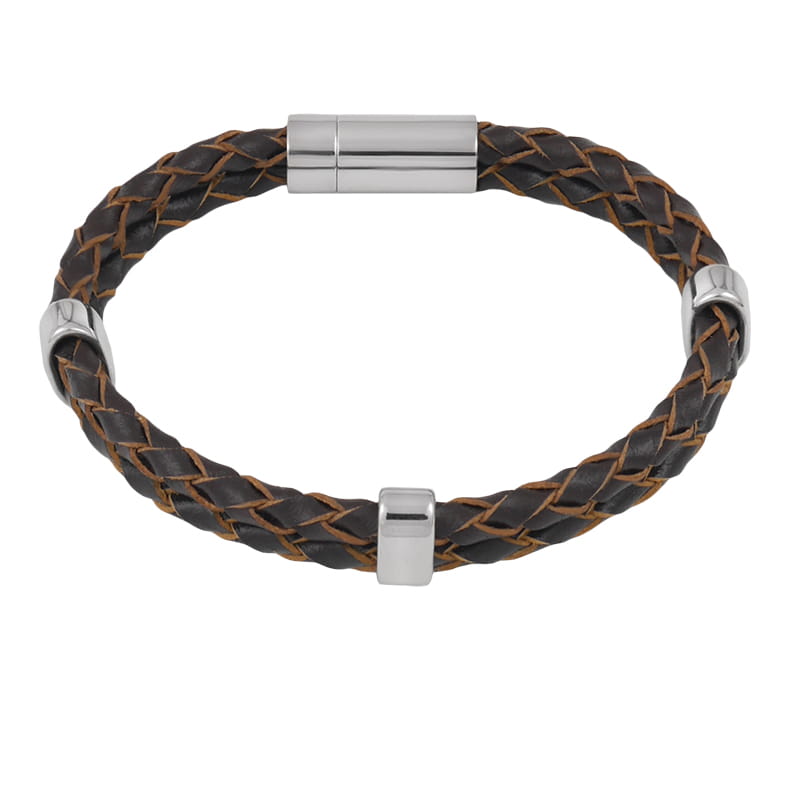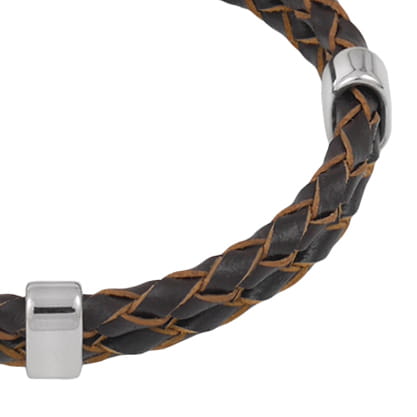 Bransoletka skórzana rzemień brązowy podwójny stal szlachetna
