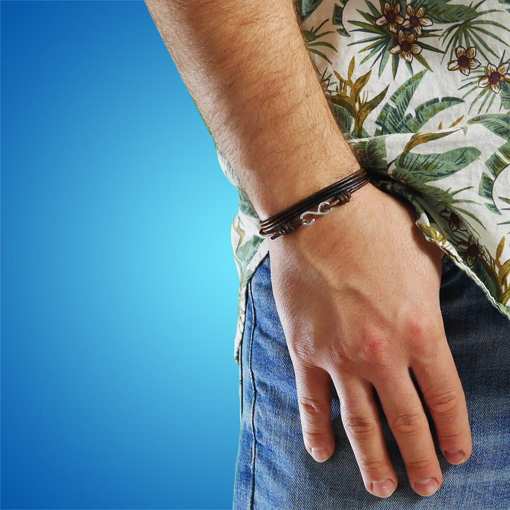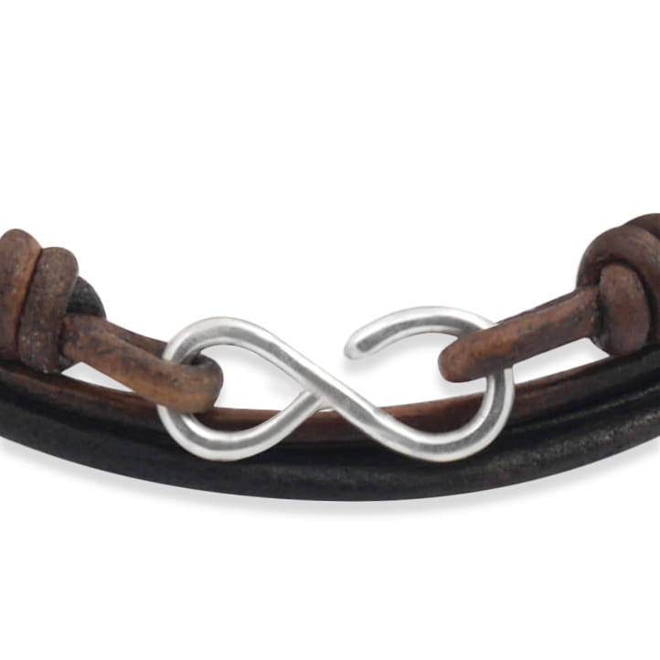 Bransoletka skórzana rzemień palony zapięcie srebro nieskończoność