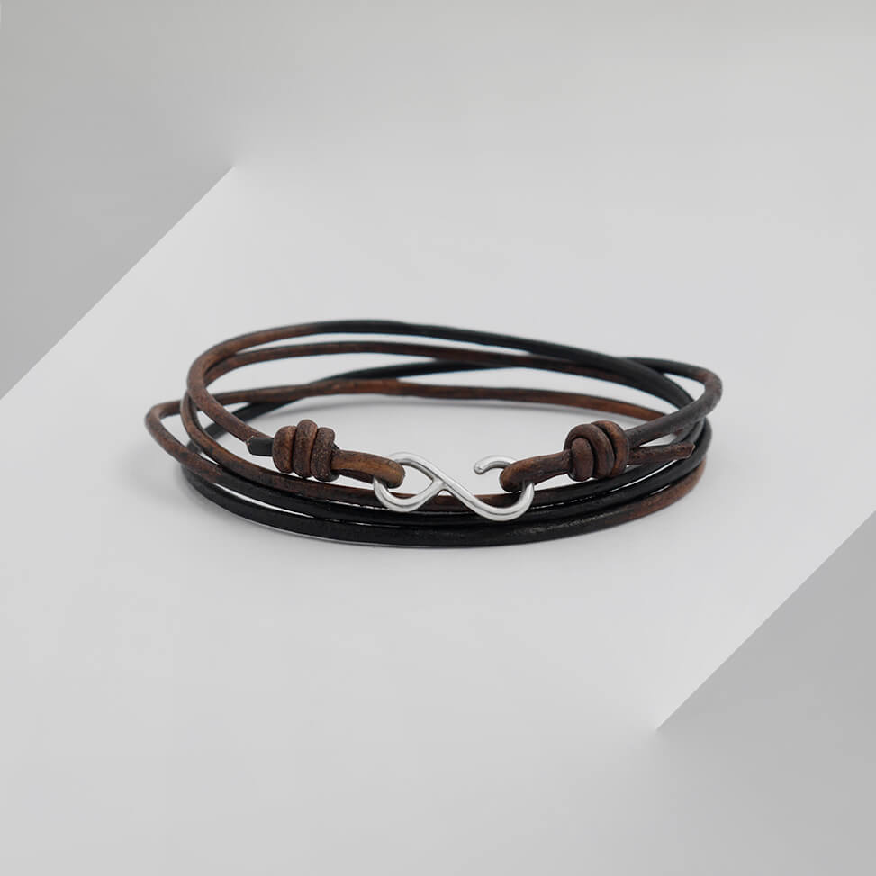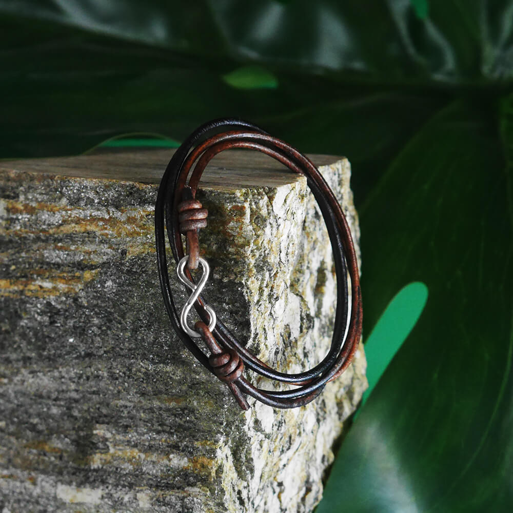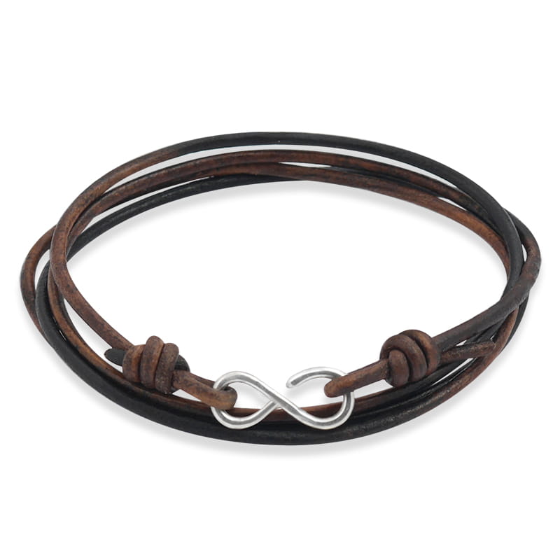 Bransoletka skórzana rzemień palony zapięcie srebro nieskończoność