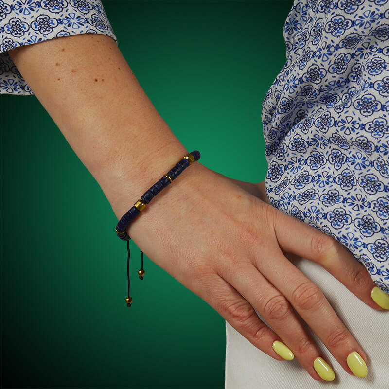 Bransoletka z drewna granatowa drewno kokosowe hematyt złoty damska