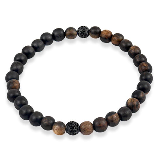 Bransoletka z drewna hebanu kulki z kryształami