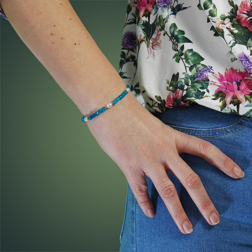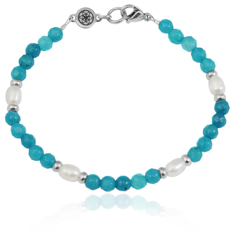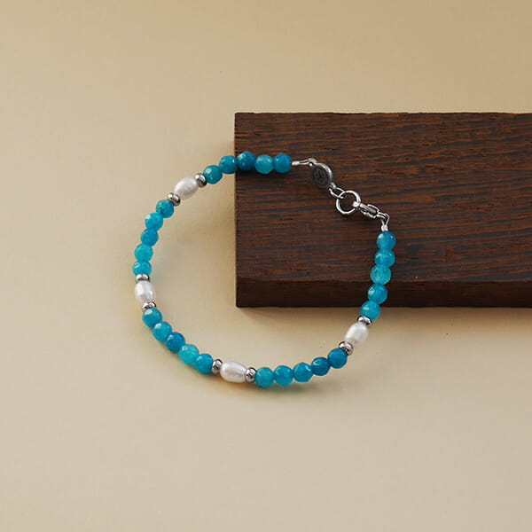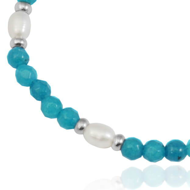 Bransoletka z kamieni chalcedon błękitny perły naturalne stal szlachetna