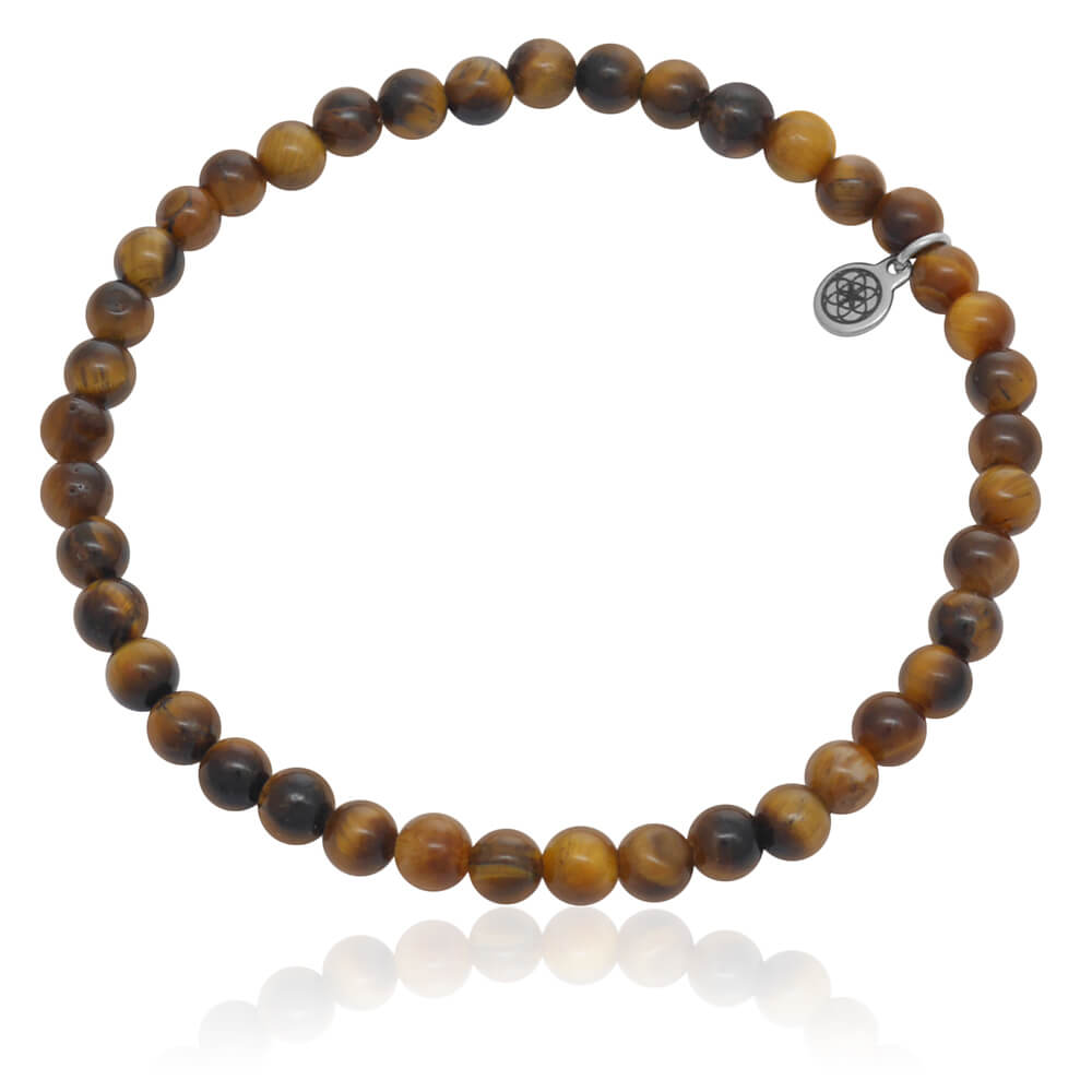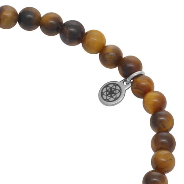 Bransoletka z kamieni classic tygrysie oko brązowe naturalne stalowe logo