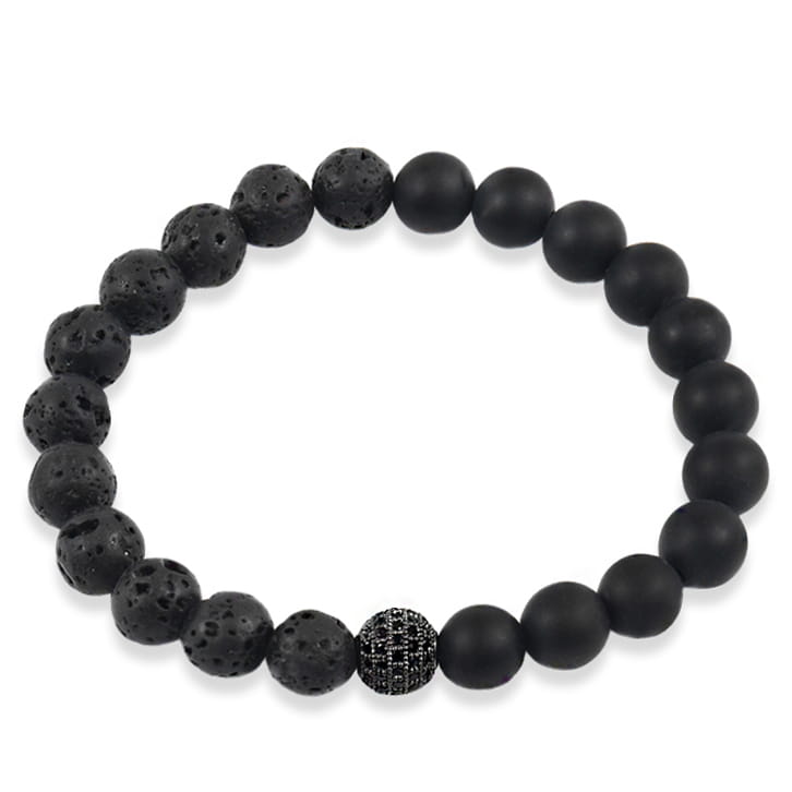 Bransoletka z kamieni czarny onyks lawa kulka kryształy
