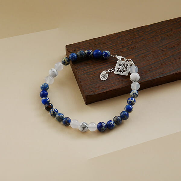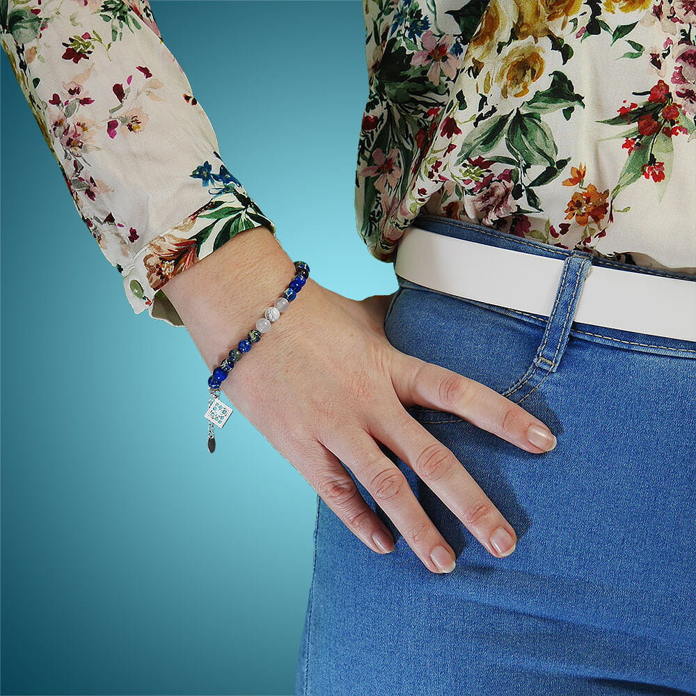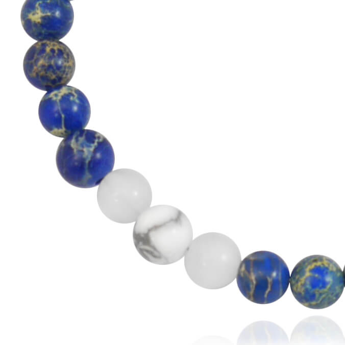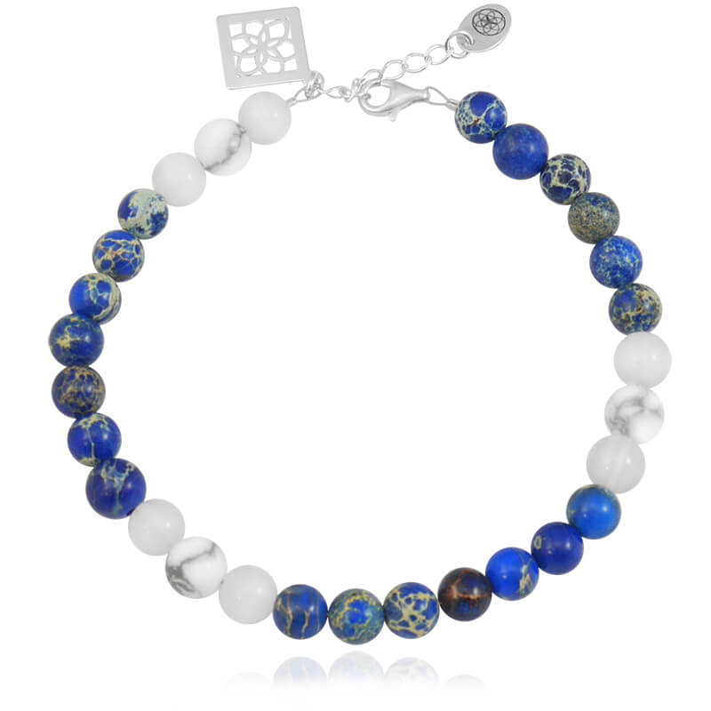 Bransoletka z kamieni jaspis niebieski agat howlit srebro rozeta