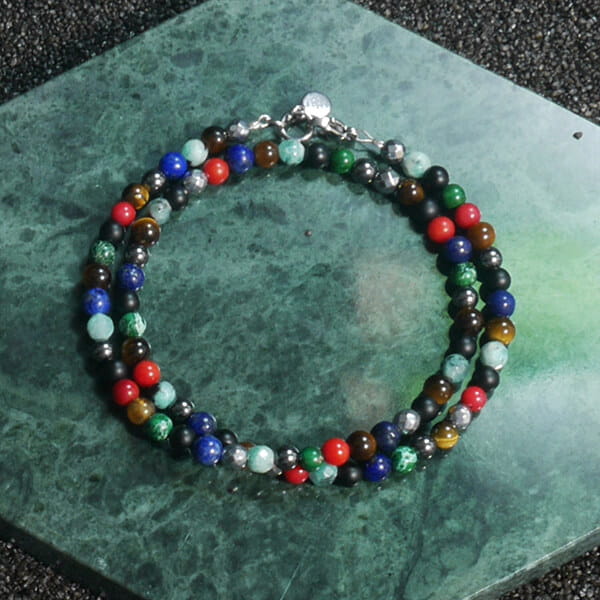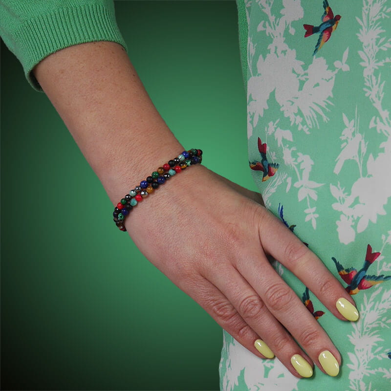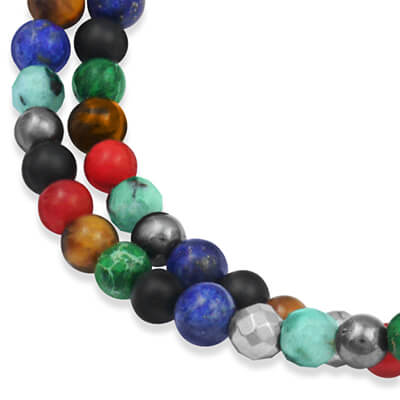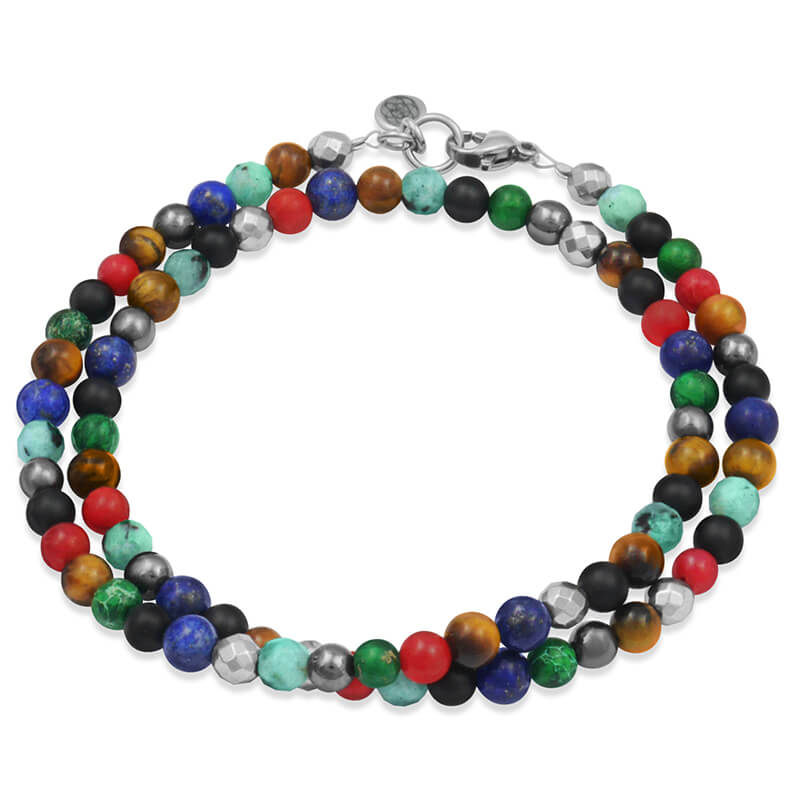 Bransoletka z kamieni kolorowa podwójna tygrysie oko koral onyks agat jaspis lapis turkus hematyt damska
