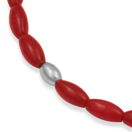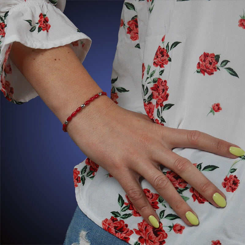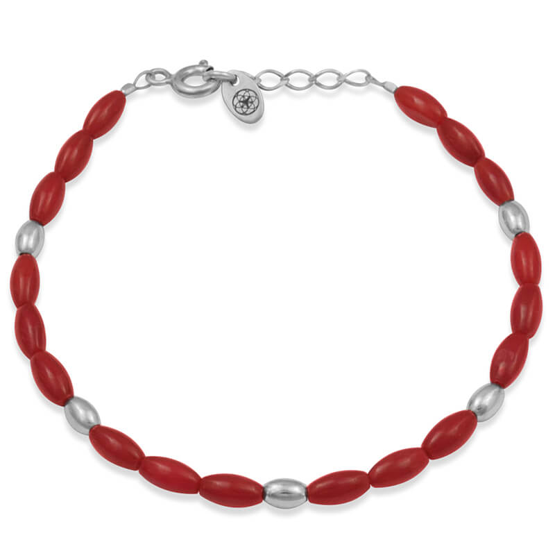 Bransoletka z kamieni koral czerwony oliwki srebro logo