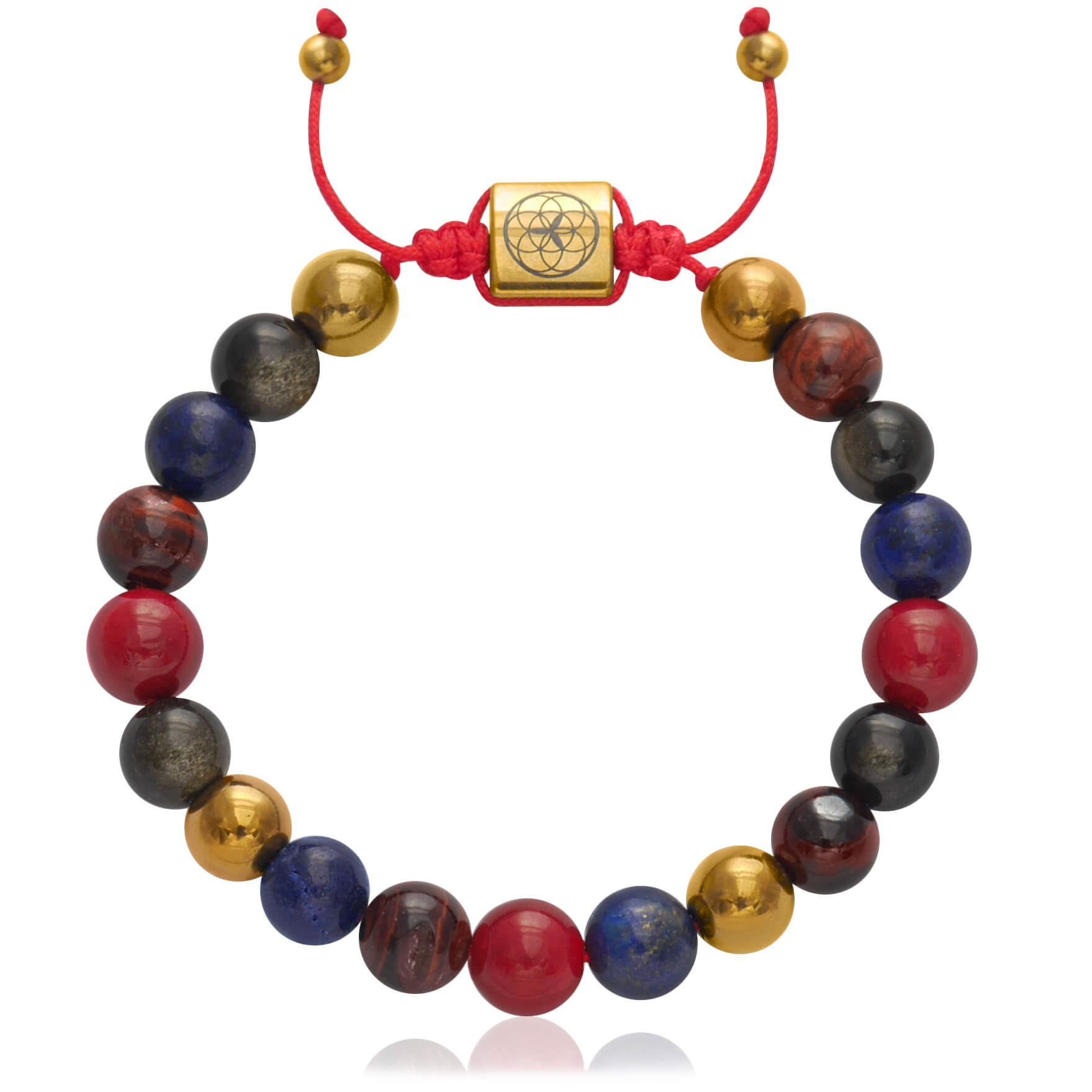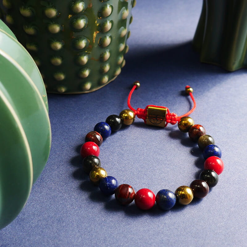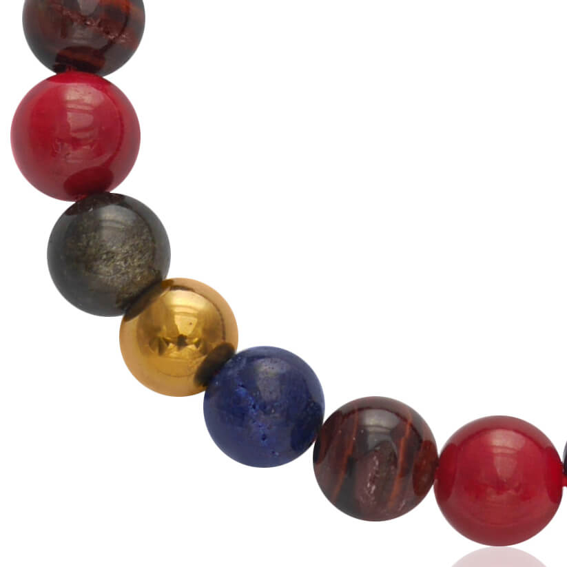 Bransoletka z kamieni koral lapis lazuli obsydian tygrysie oko hematyt