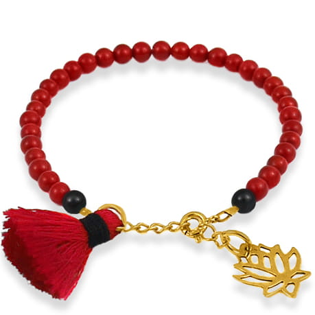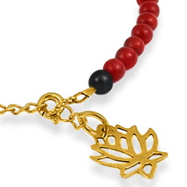 Bransoletka z kamieni koral onyks chwost lotos pozłacane srebro