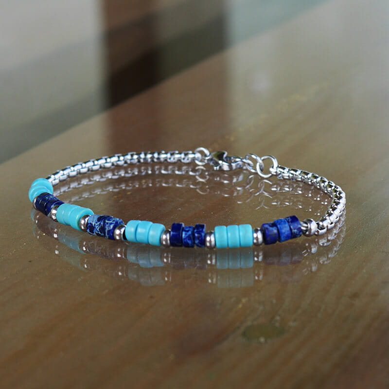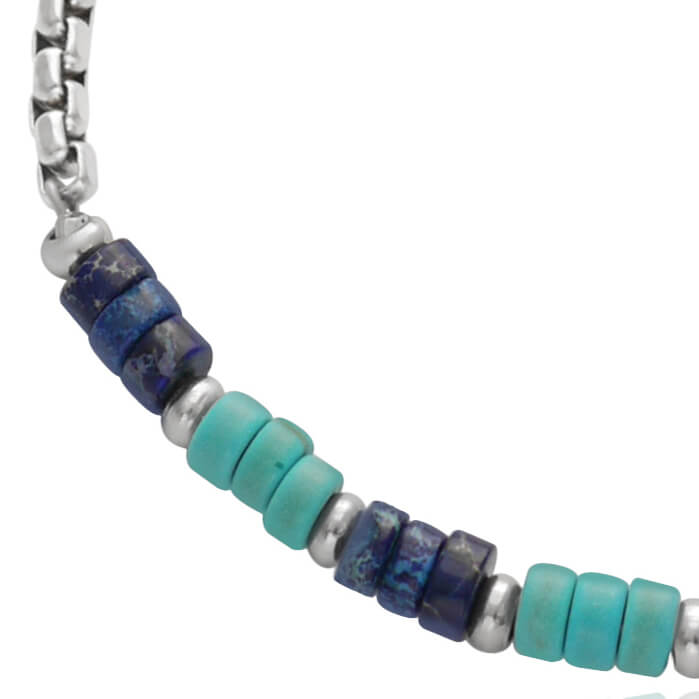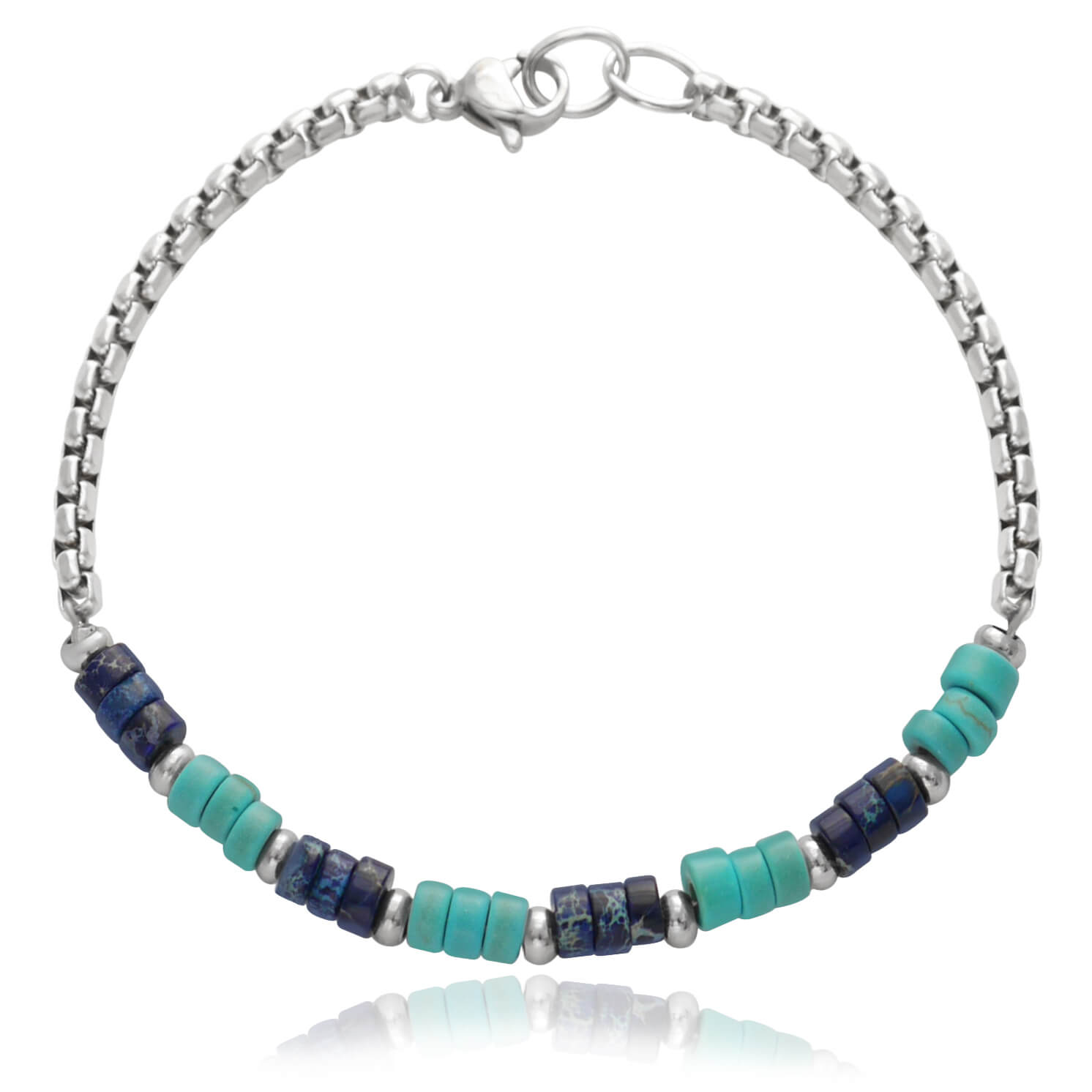 Bransoletka z kamieni krążki turkusowy howlit jaspis stal szlachetna