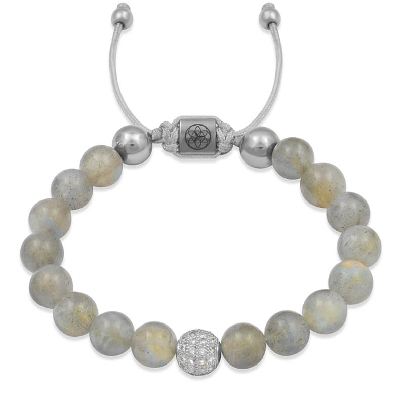 Bransoletka z kamieni labradoryt jasny kulka z kryształkami hematyt męska