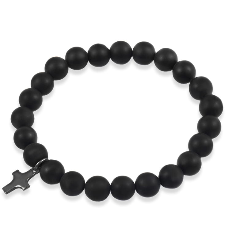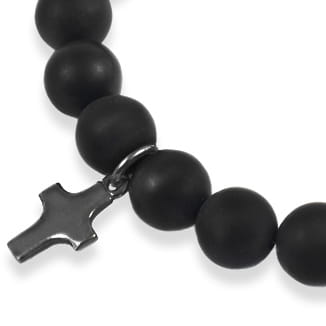 Bransoletka z kamieni matowy onyks zawieszka krzyż srebro oksydowane