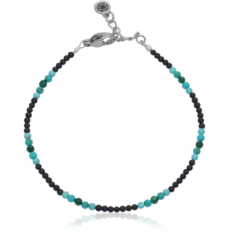 Bransoletka z kamieni mini 2mm onyks czarny turkus jadeit stal szlachetna
