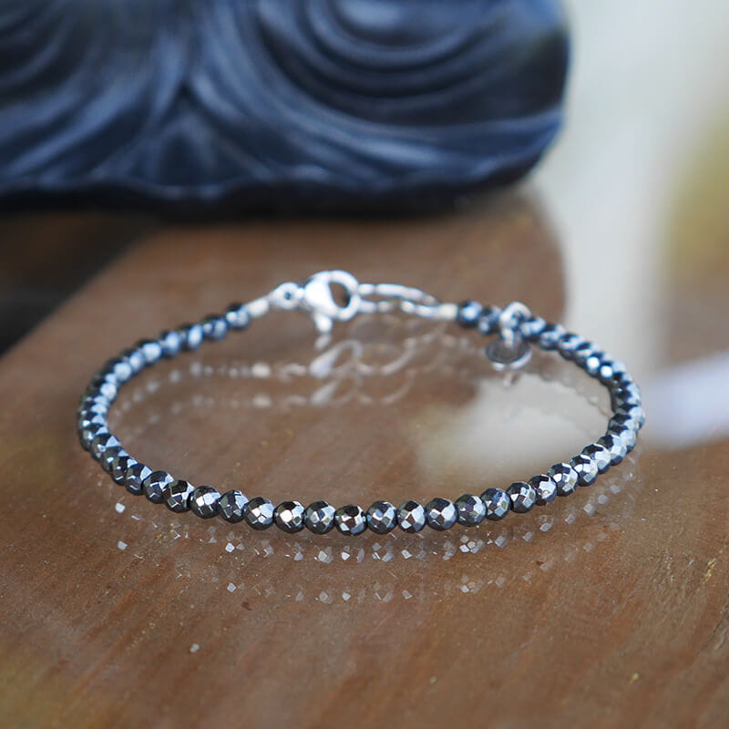 Bransoletka z kamieni mini hematyt naturalny grafitowy stal szlachetna