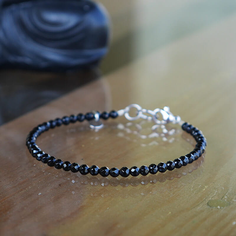 Bransoletka z kamieni mini onyks czarny naturalny stal