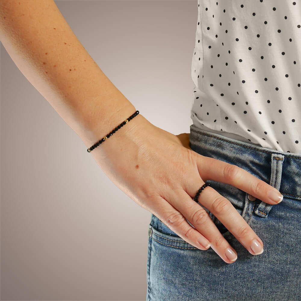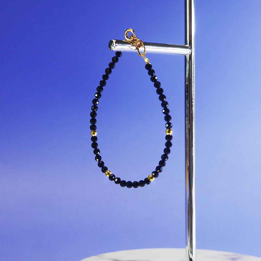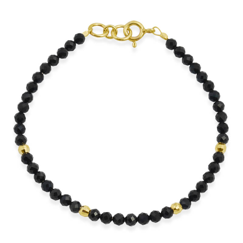 Bransoletka z kamieni mini spinel czarny srebro pozłacane
