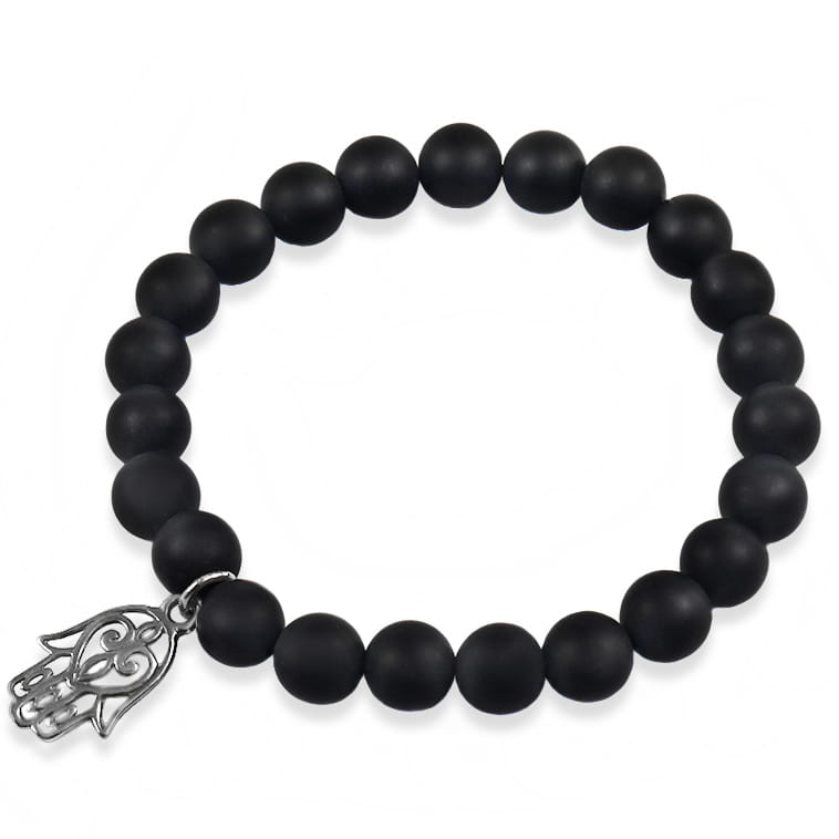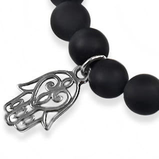 Bransoletka z kamieni onyks hamsa srebro oksydowane