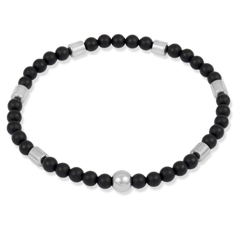 Bransoletka z kamieni onyks matowy hematyt srebrny