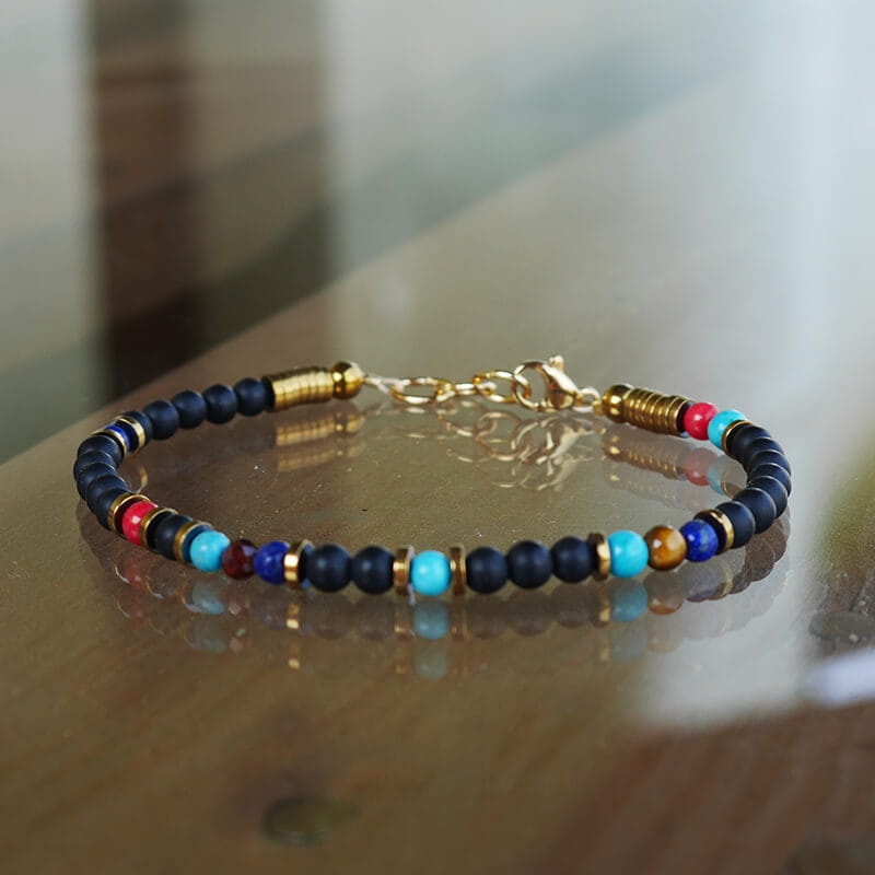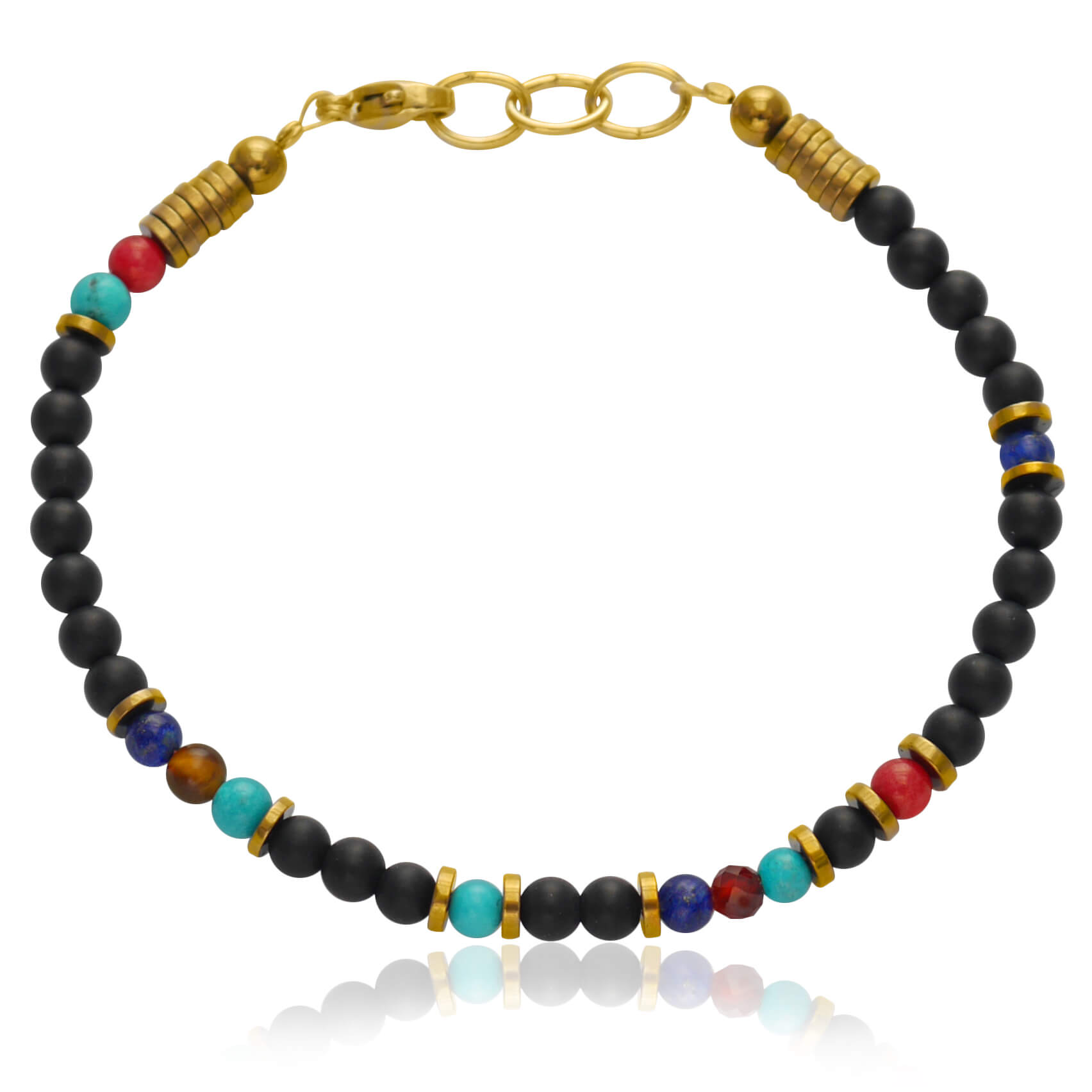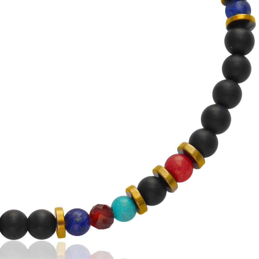 Bransoletka z kamieni onyks matowy turkus koral hematyt stal