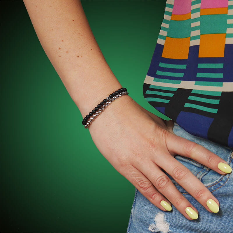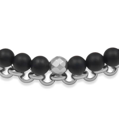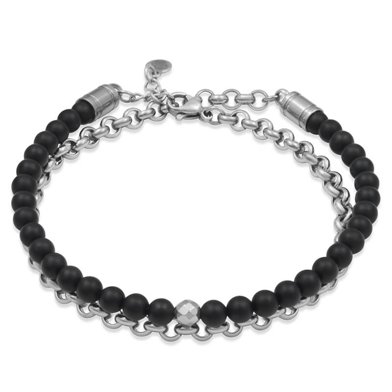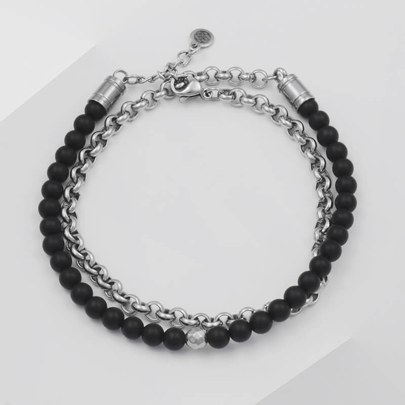 Bransoletka z kamieni podwójna onyks czarny stal łańcuch damska