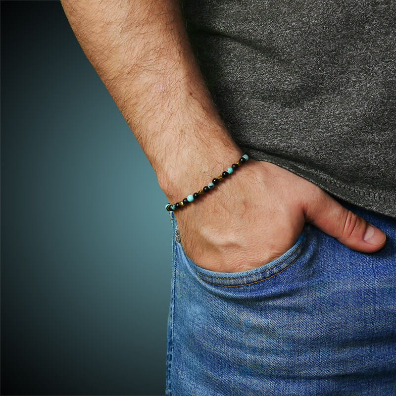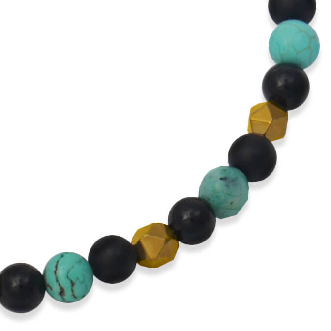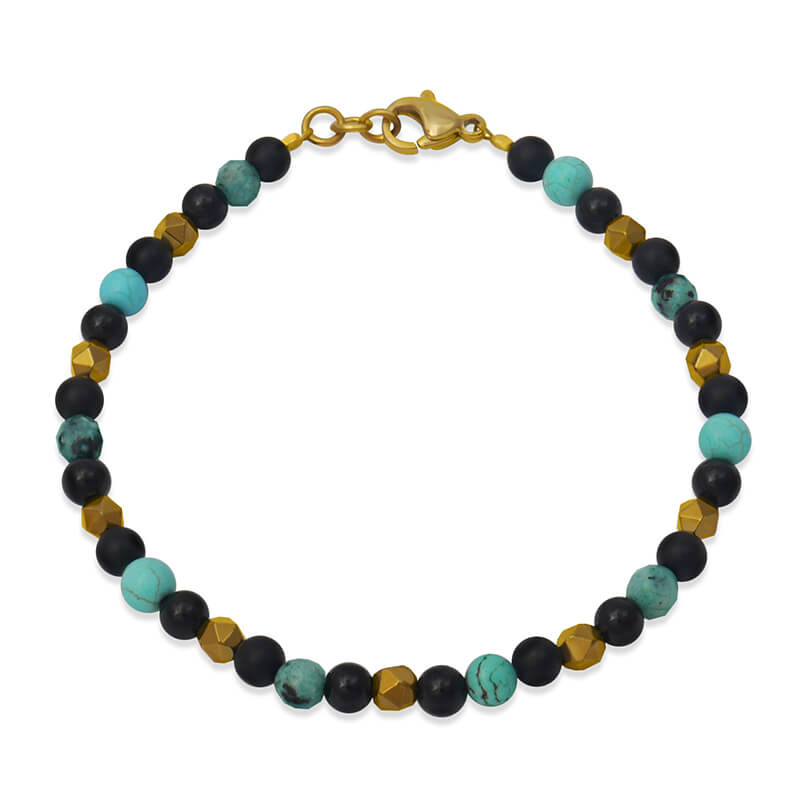 Bransoletka z kamieni turkus afrykański agat onyks hematyt stal złota