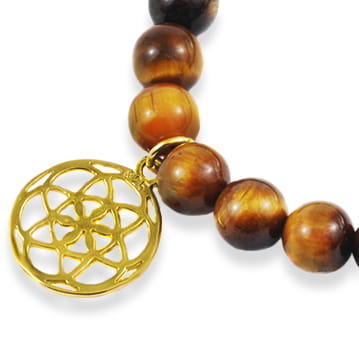 Bransoletka z kamieni tygrysie oko kwiat życia pozłacane srebro
