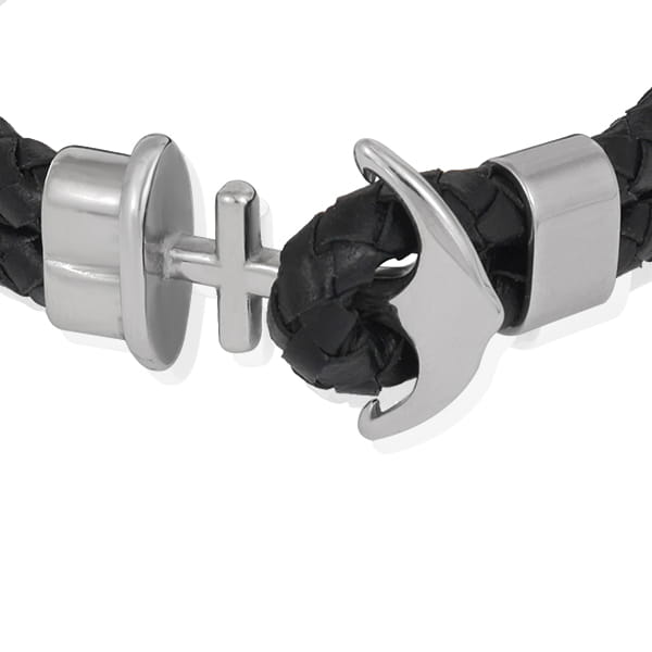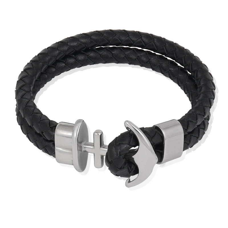 Bransoletka z kotwicą podwójny rzemień naturalny czarny