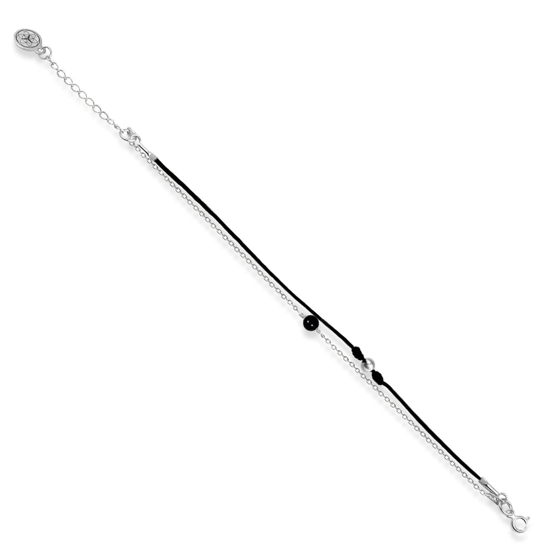 Bransoletka ze srebra kamień agat czarny sznurek