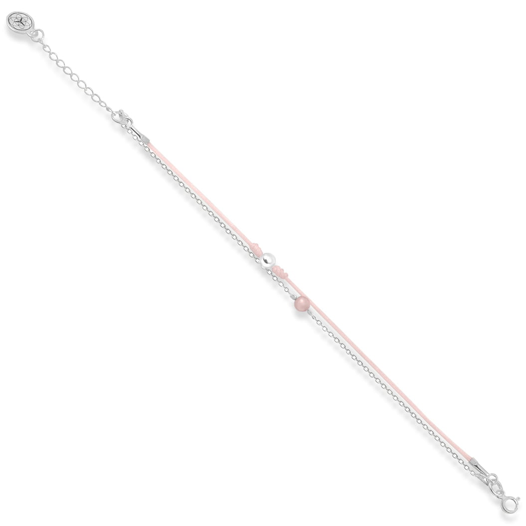 Bransoletka ze srebra kamień jadeit różowy sznurek