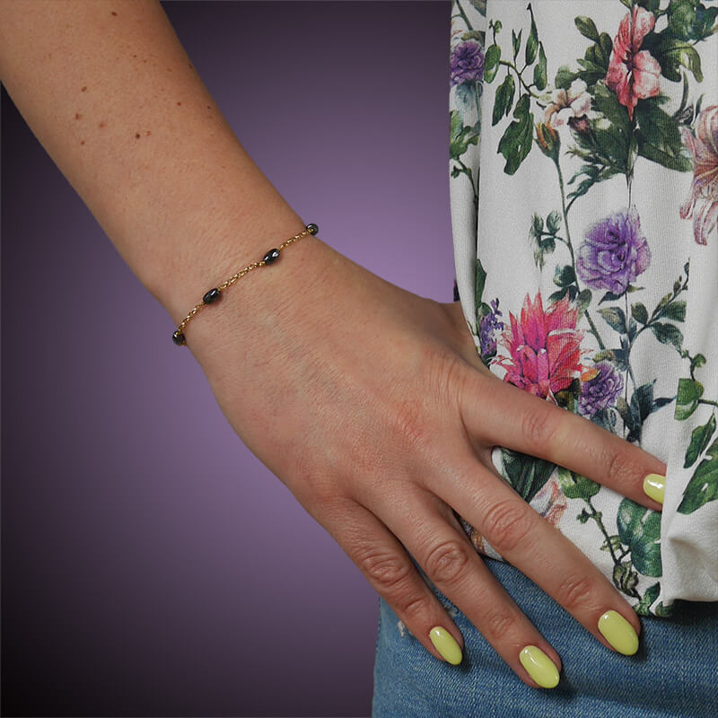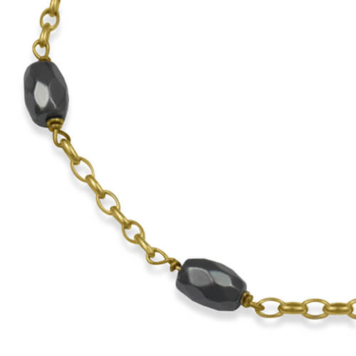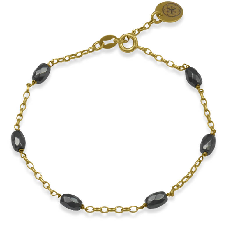 Bransoletka ze srebra pozłacana kamienie hematyt fasetowany oliwki