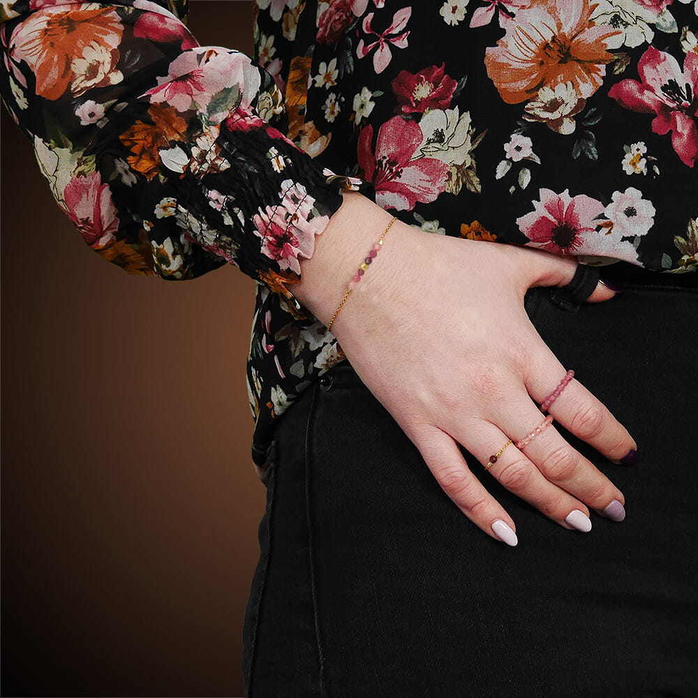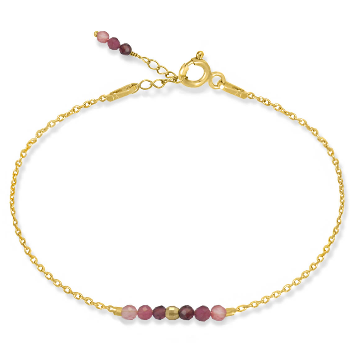 Bransoletka ze srebra pozłacana kamienie mini granat kwarc turmalin srebro pozłacane