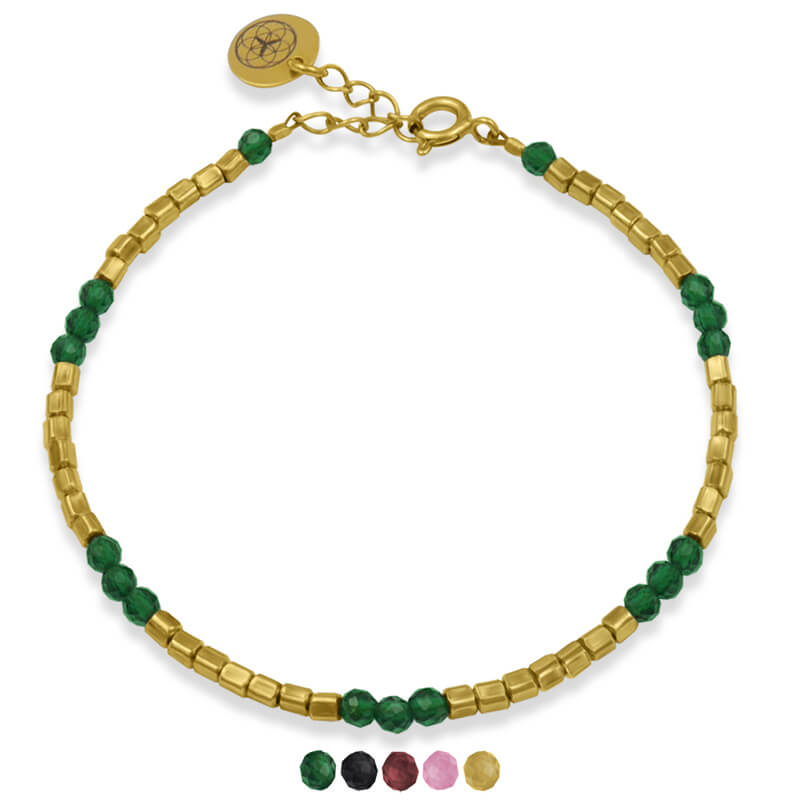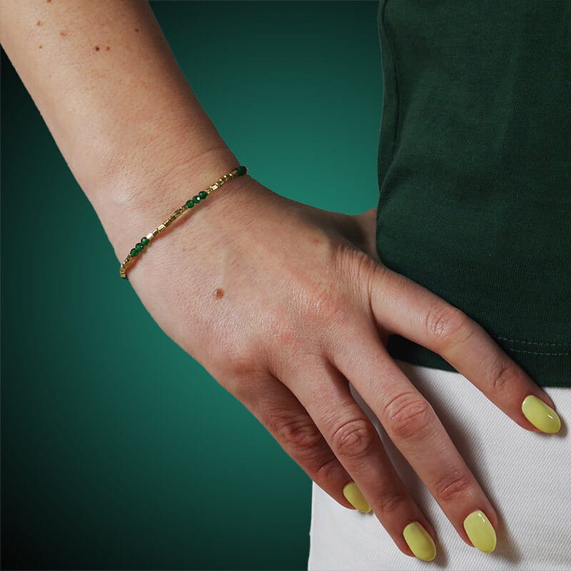 Bransoletka ze srebra pozłacana kostka kamienie naturalne jadeit szmaragdowy