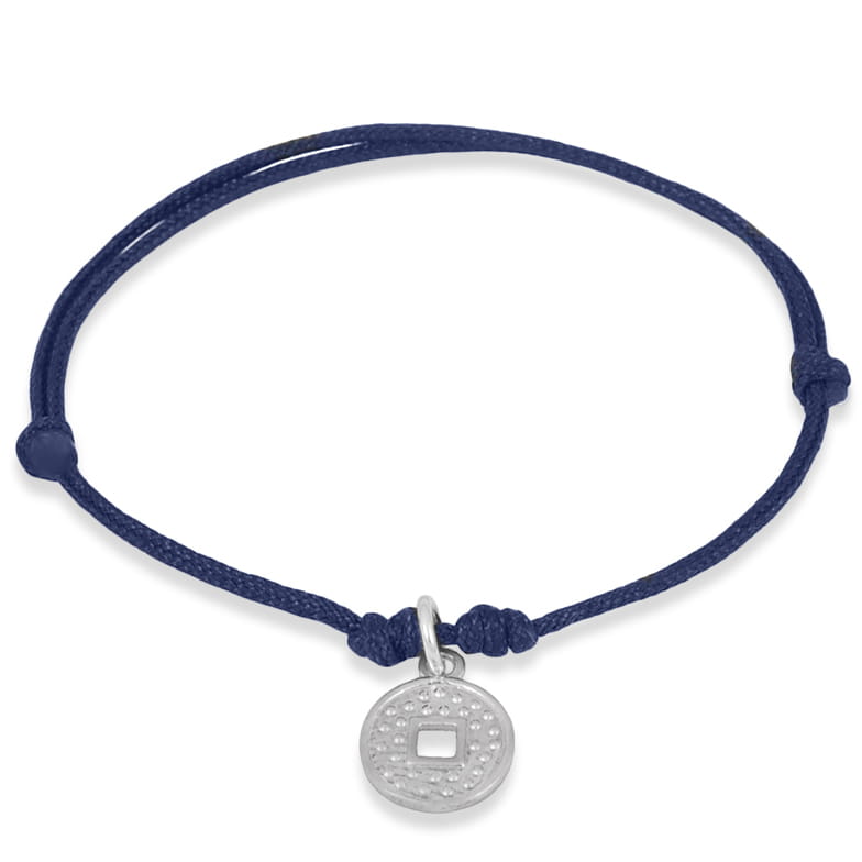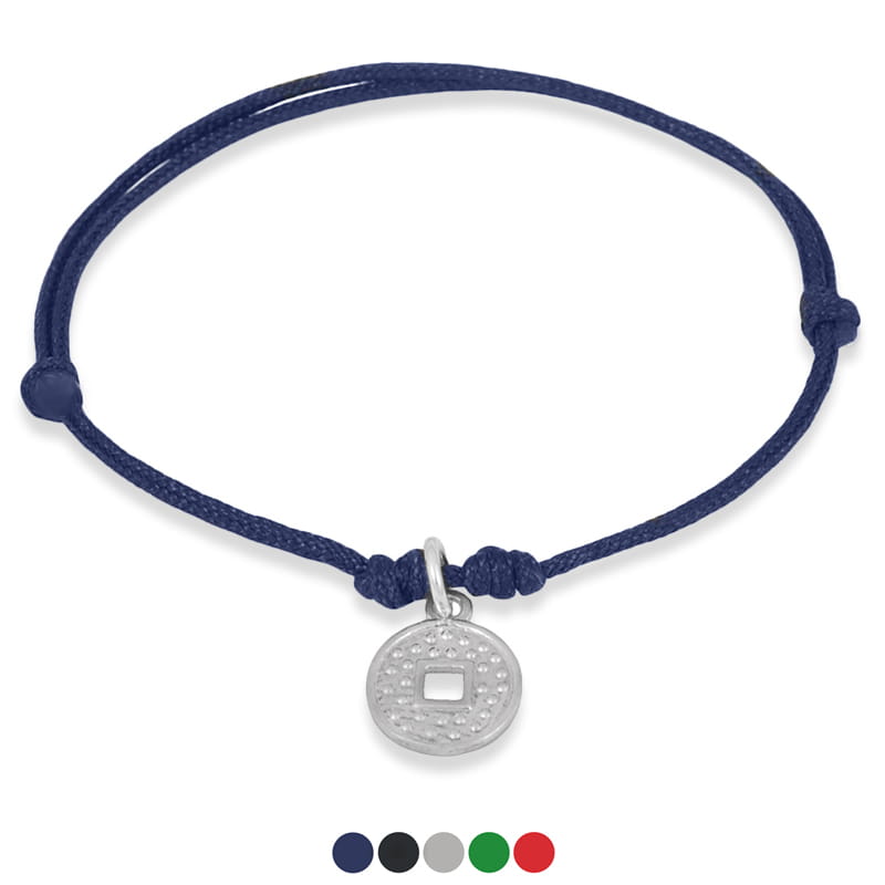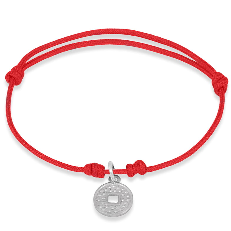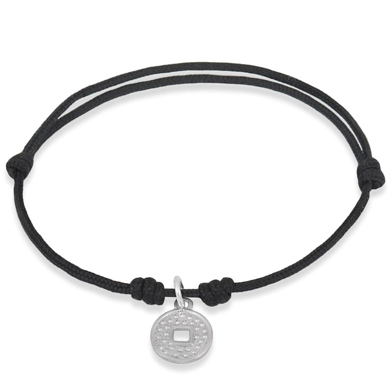 Bransoletka ze sznurka chińska moneta srebro