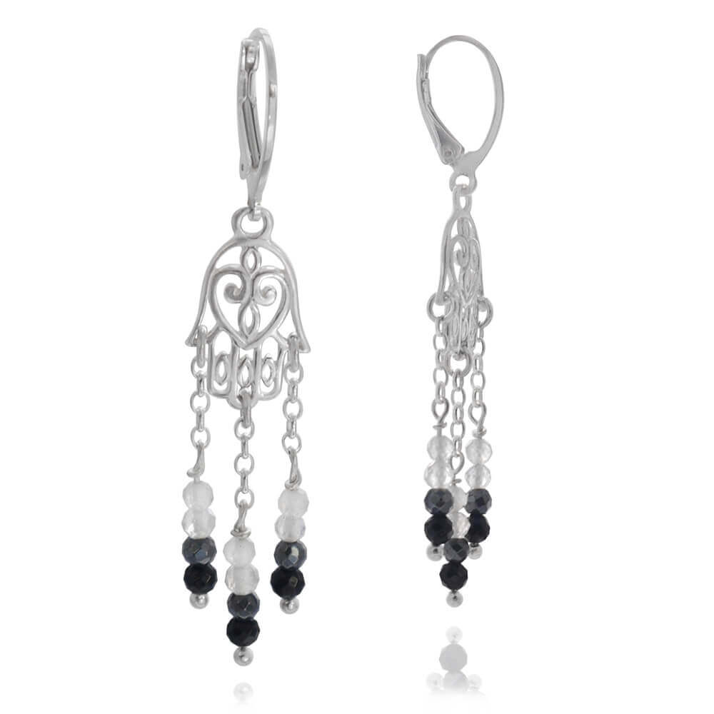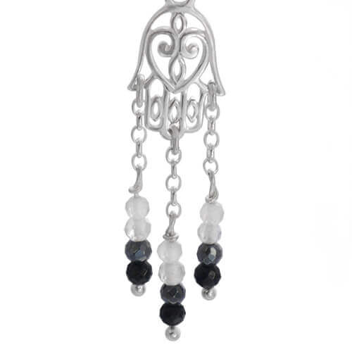 Kolczyki hamsa srebro kamienie naturalne spinel hematyt kryształ górski