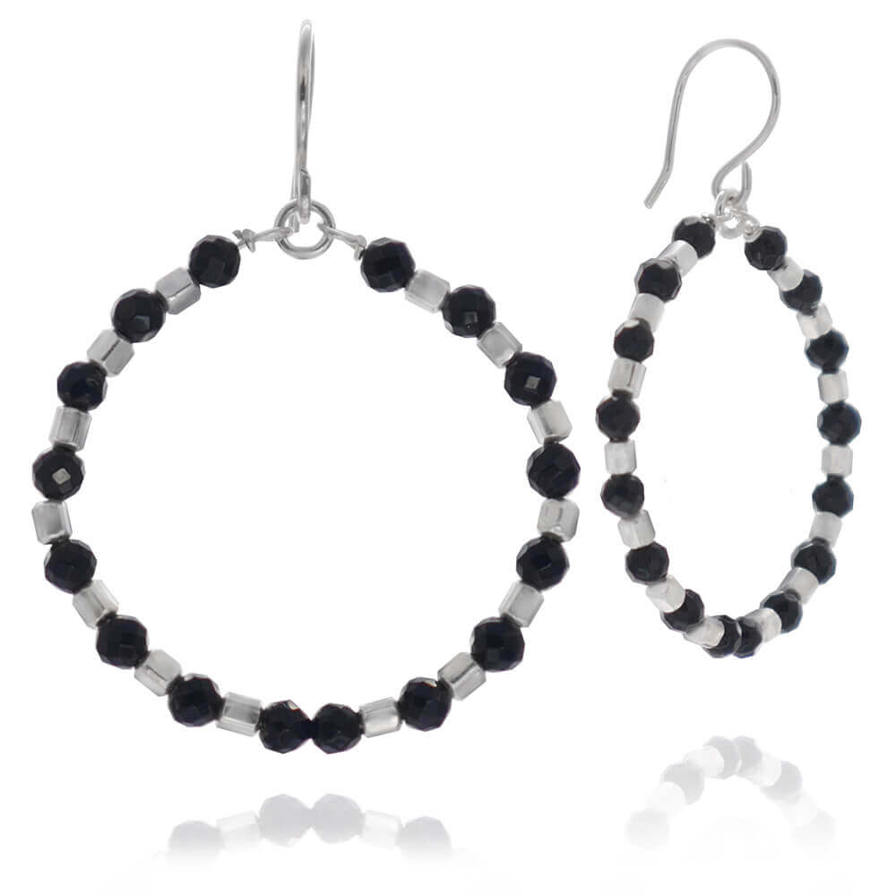 Kolczyki z kamieni koła czarny onyks kostka srebro