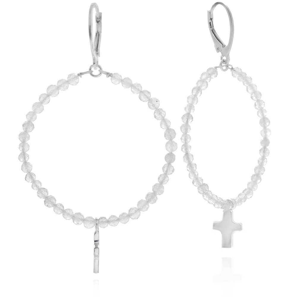 Kolczyki z kamieni koła duże labradoryt krzyż srebro