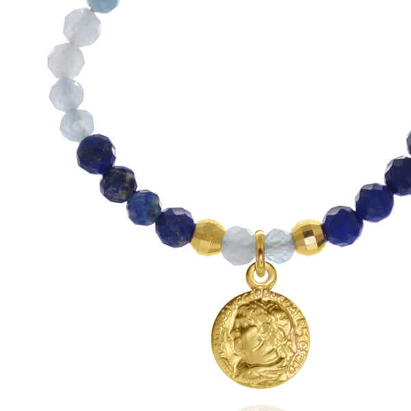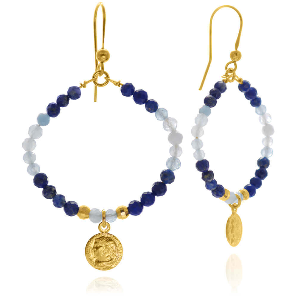 Kolczyki z kamieni koła lapis lazuli akwamaryn moneta srebro pozłacane