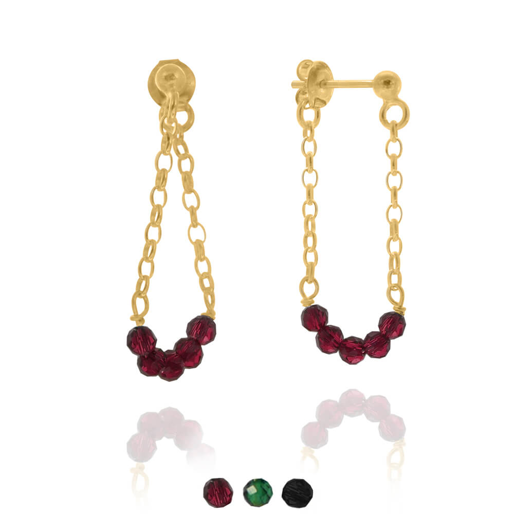 Kolczyki z kamieni zwisy granat jadeit spinel srebro pozłacane