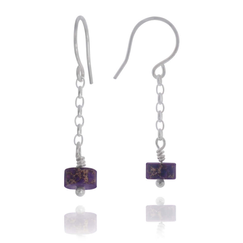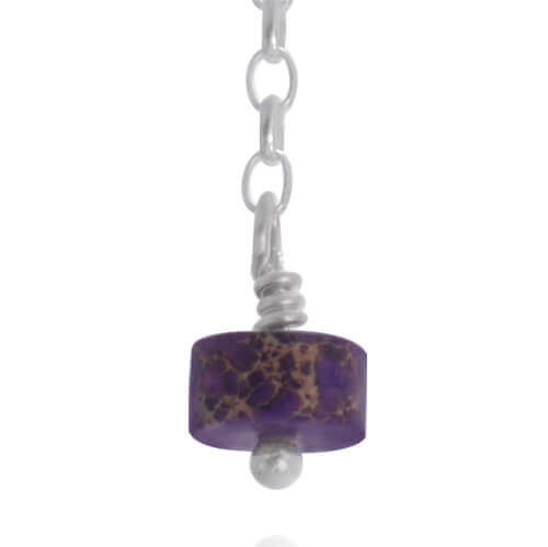 Kolczyki zwisy kamień jaspis fioletowy krążek srebro łańcuszek